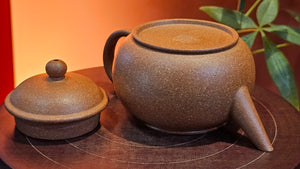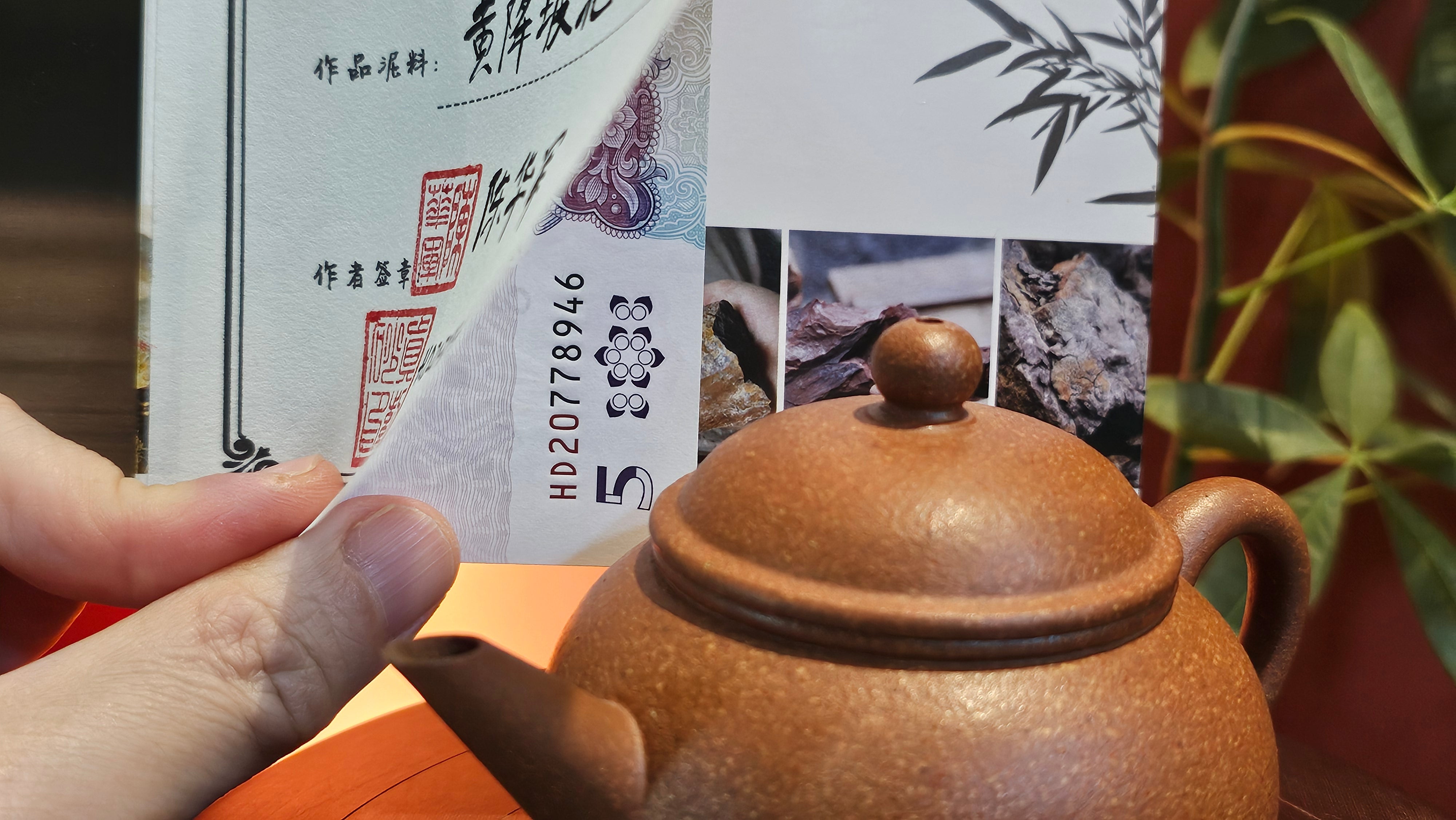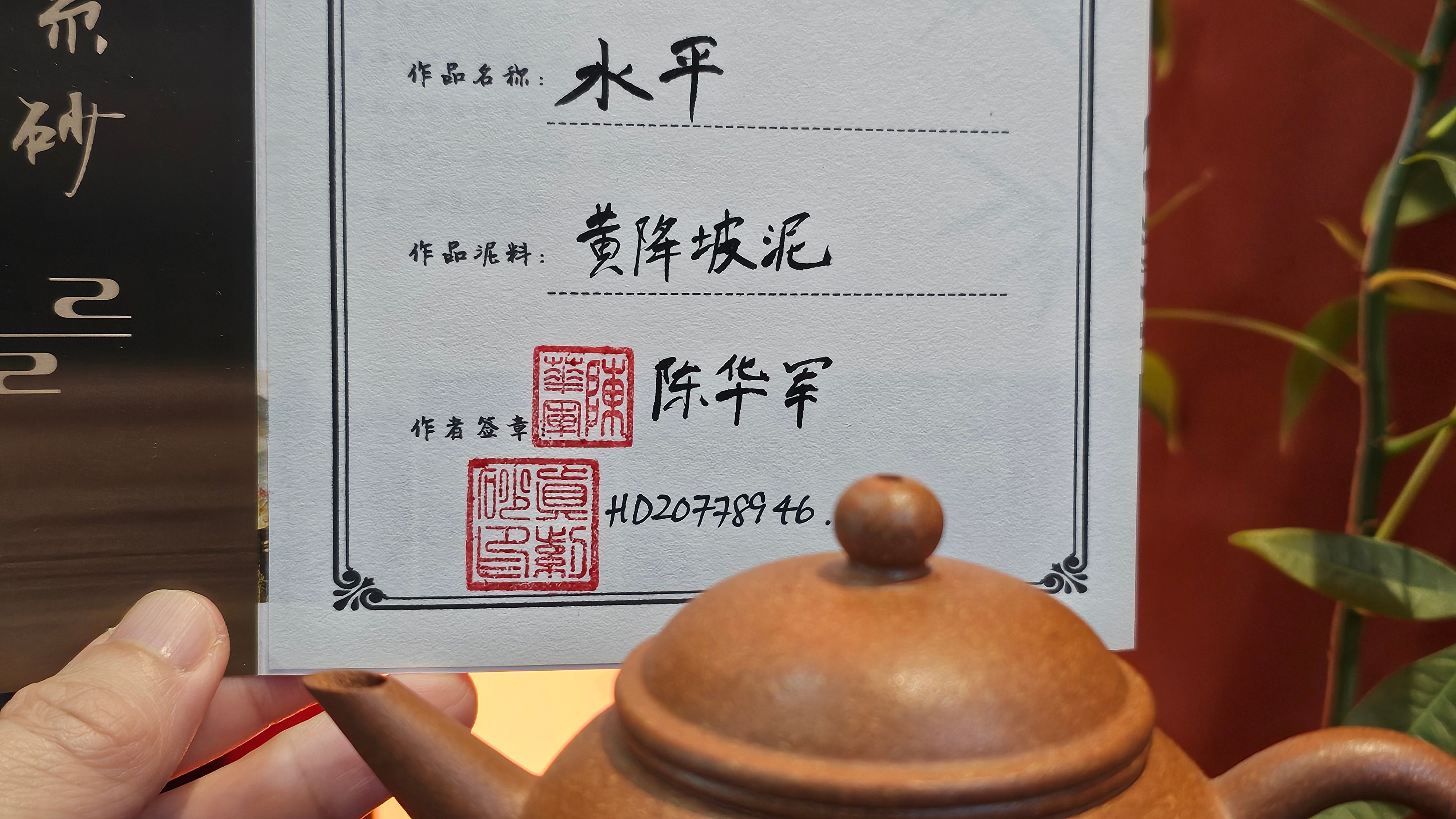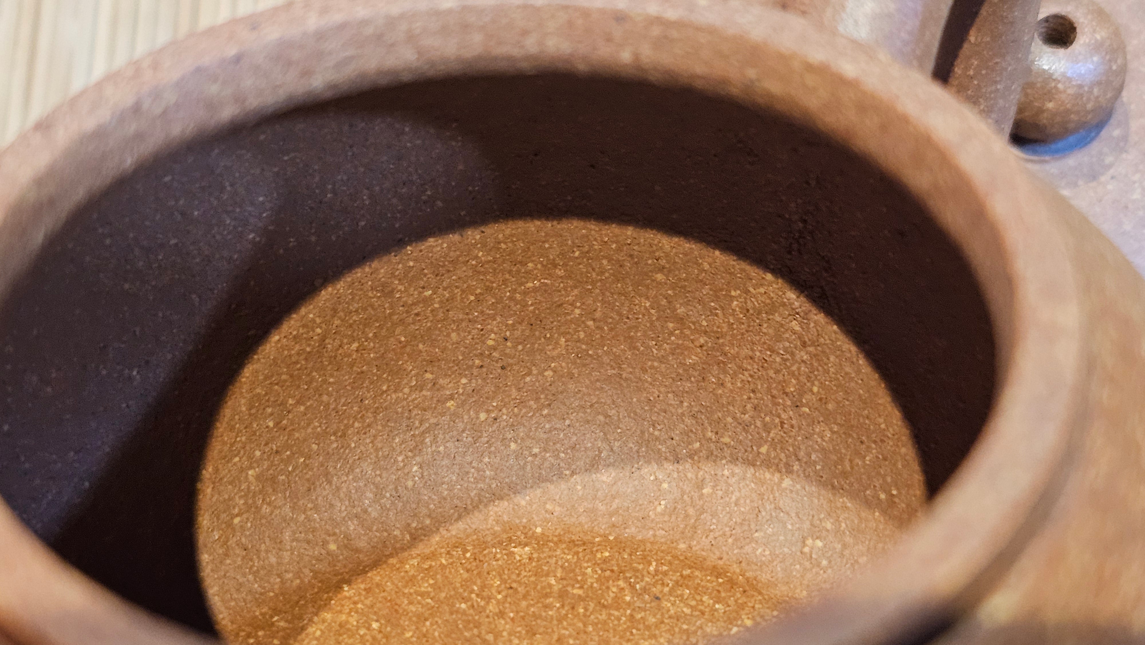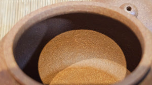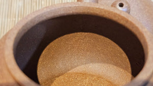 Chen Hua Jun is very familiar with Jiang Po Ni, both Red and Yellow, and here, he brings forth this gentlemanly Shui Ping 水平。 Jiang Po Ni is a combination of Hong Ni, Zi Ni and Lü Ni. Huang (Yellow) Jiang Po Ni is amazingly porous and yet inherently contains a fair degree of Hong Ni within, and with a higher percentage of Lü Ni within than Hong (Red) Jiang Po Ni. Huang Jiang Po Ni is one of the most amazing unadulterated ZiSha clay with amazing Patina formation through use. It is very rewarding to use Huang Jiang Po Ni, both for its amazing Patina formation and its excellent pairings with both Sheng and Shu Pu Er.