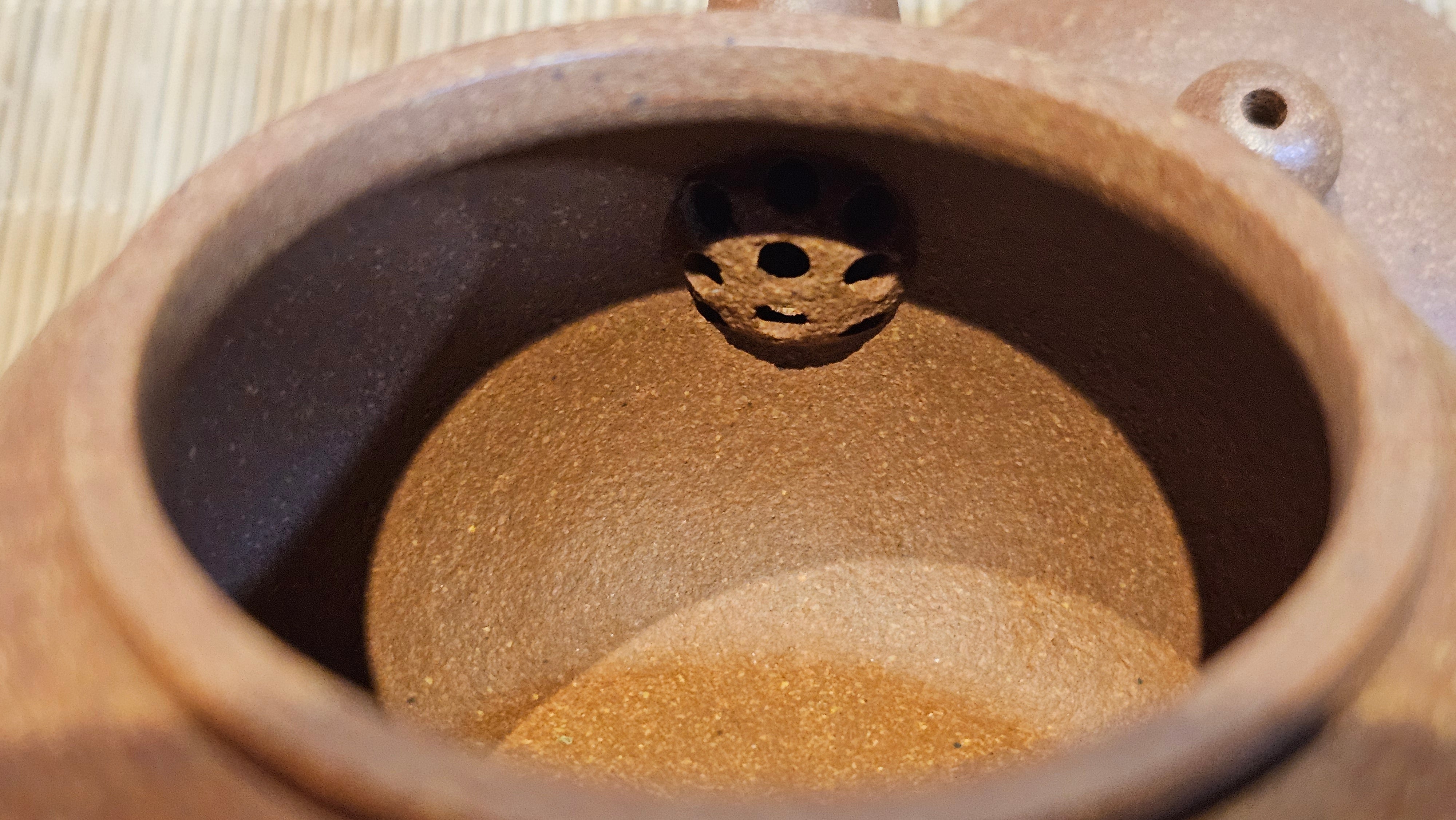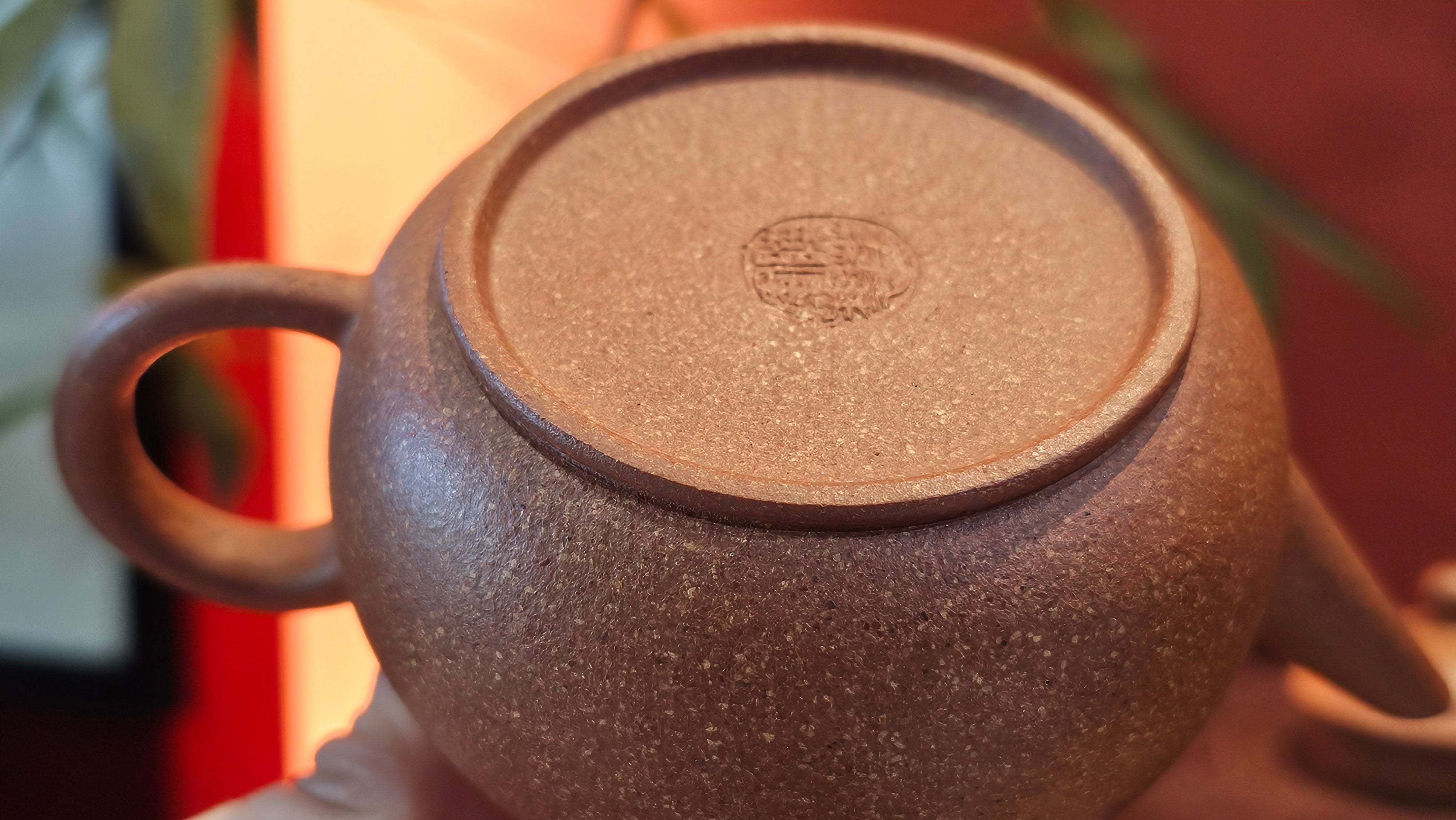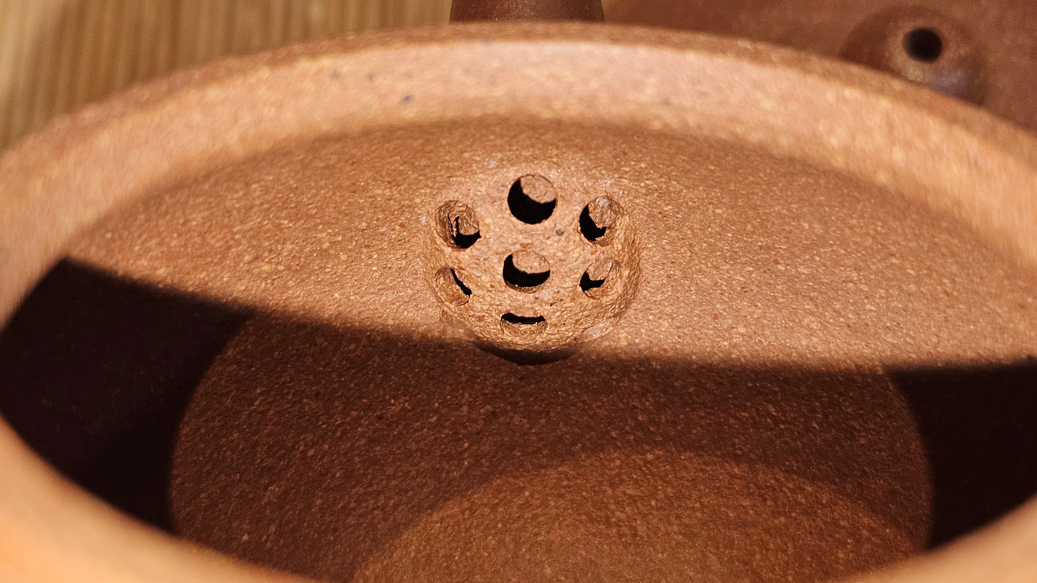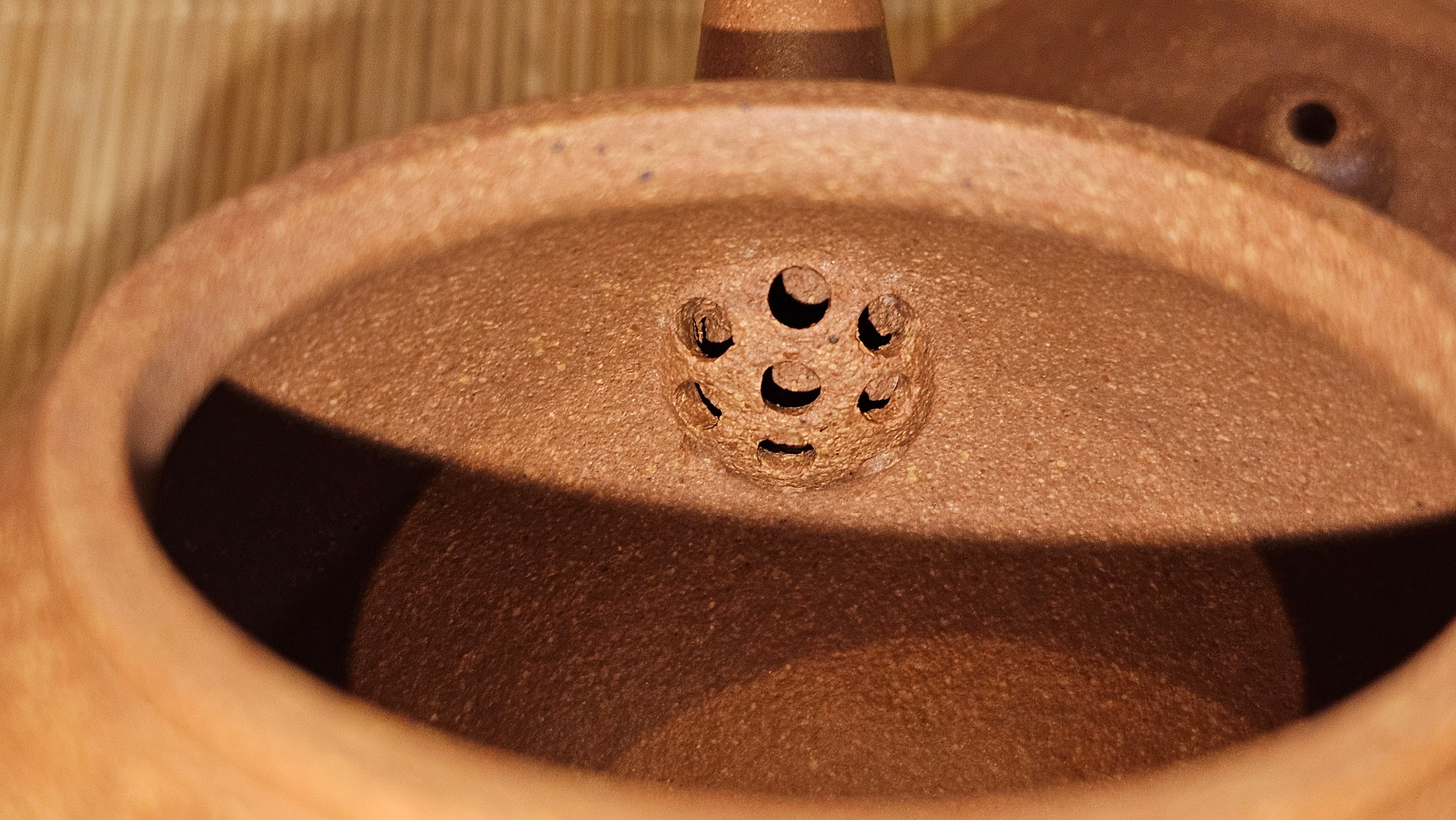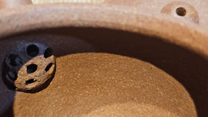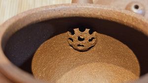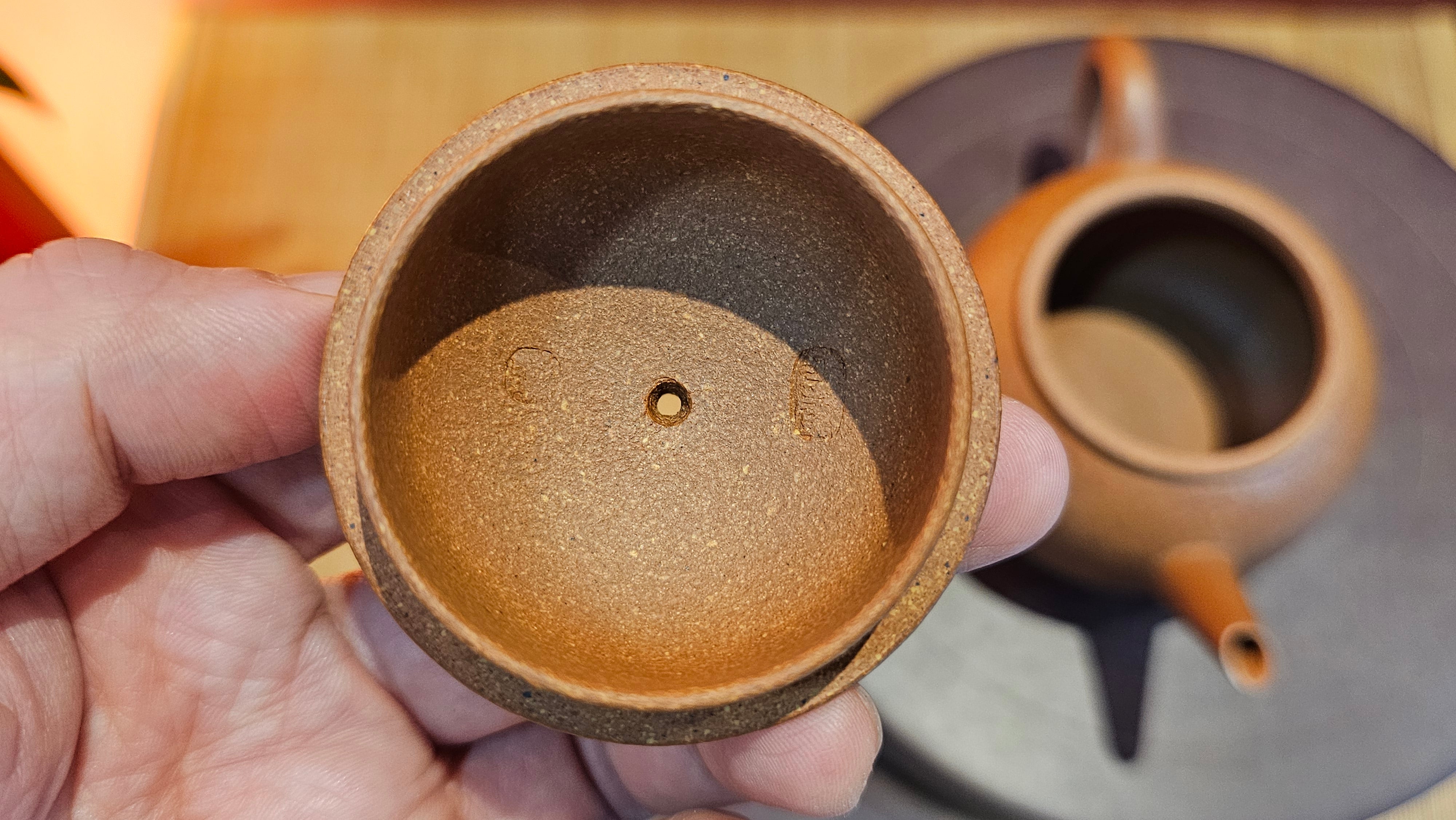 Craftsman Chen also conscientiously sculpted a 手推内球孔 Hand-Pushed Spherical Filter to increase the number of filter holes for a solid and fast pour of tea out, working with the largish diameter spout; and with better catching of tea leaves at the bottom fast while allowing tea to flow out from the upper holes.