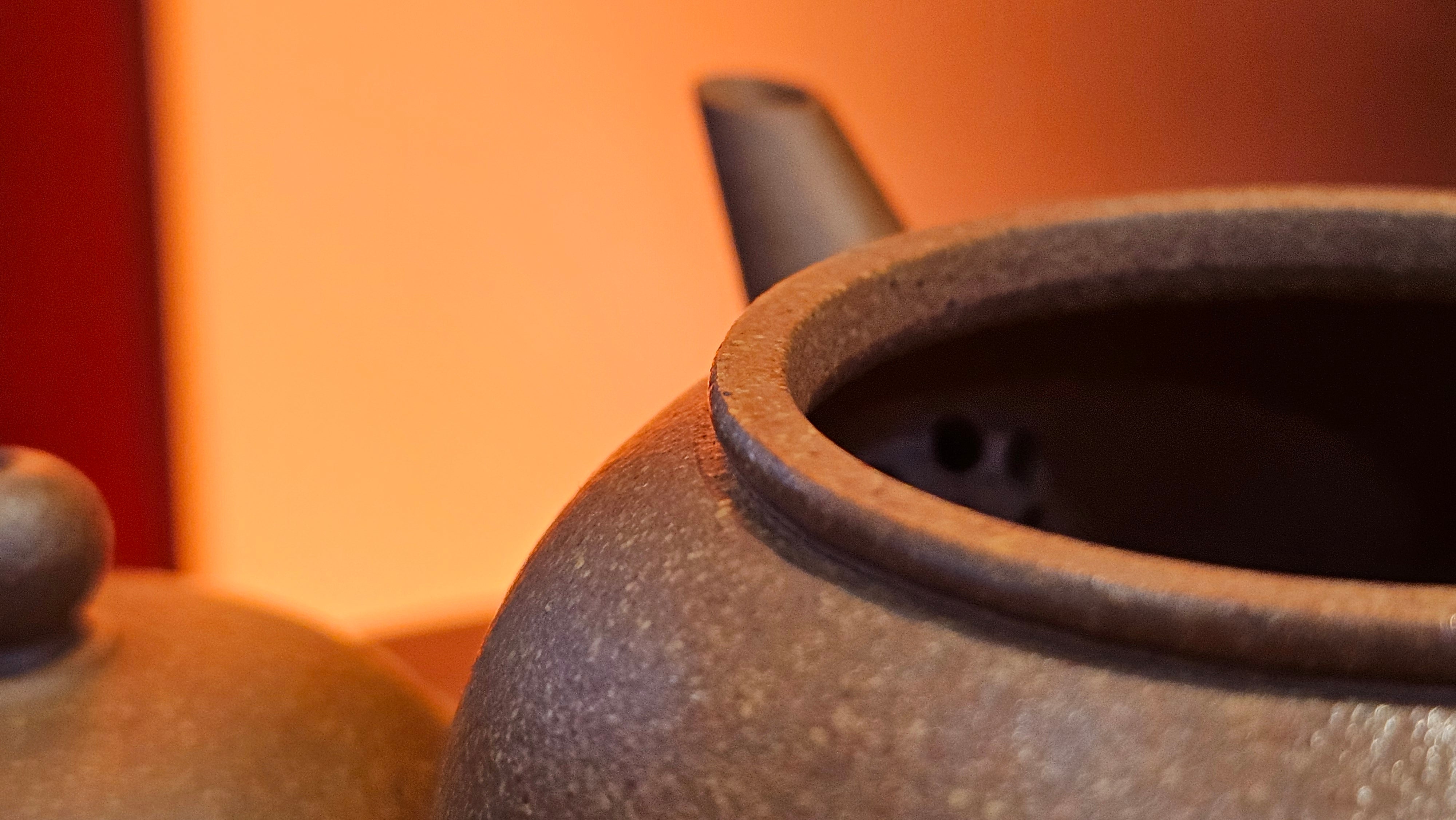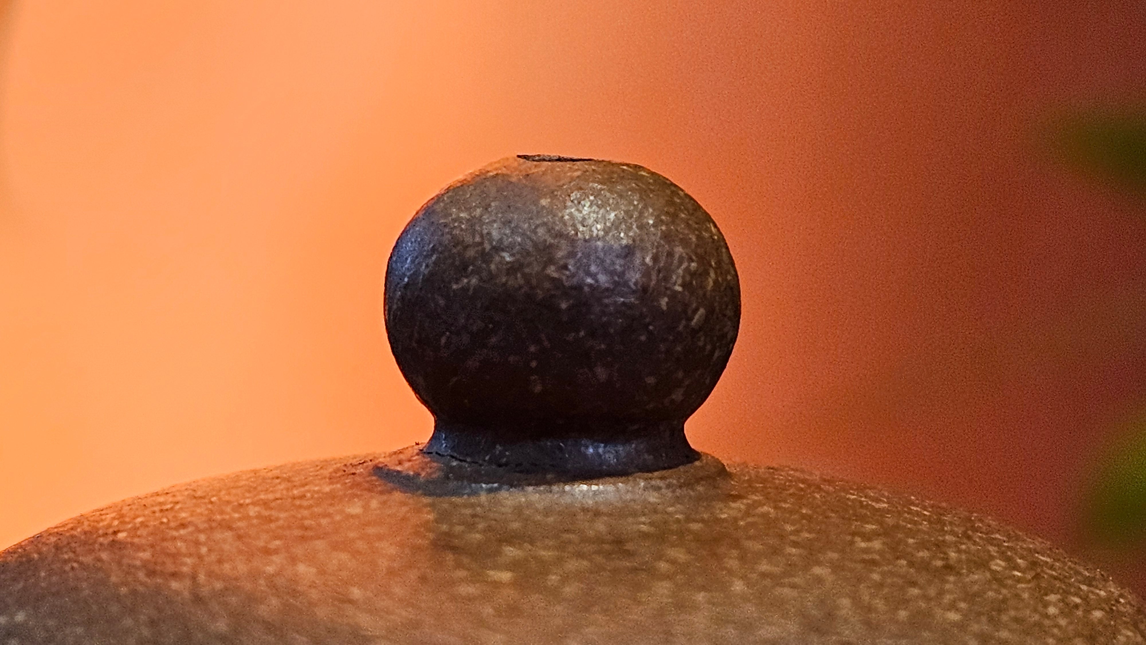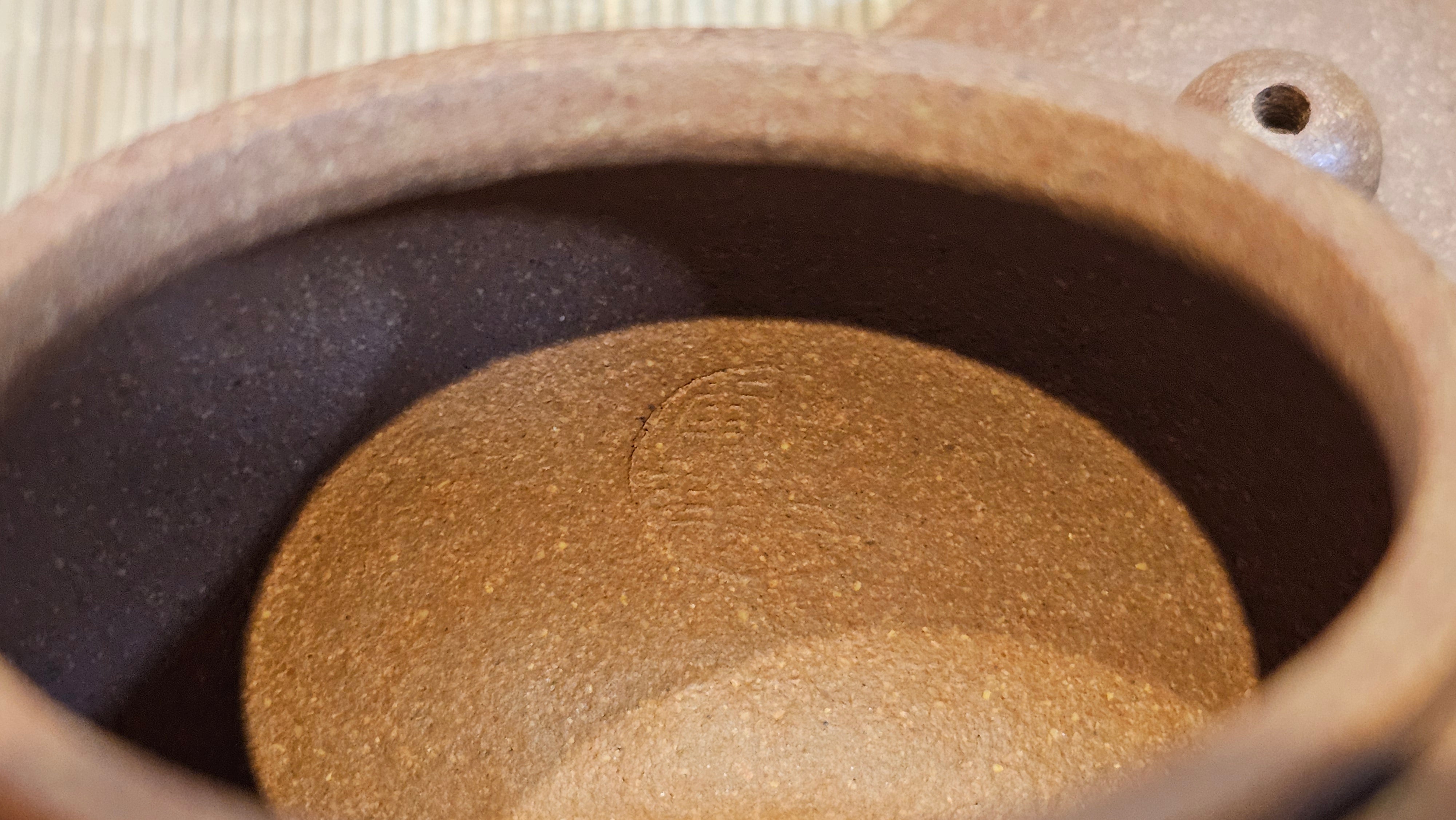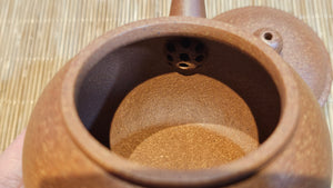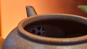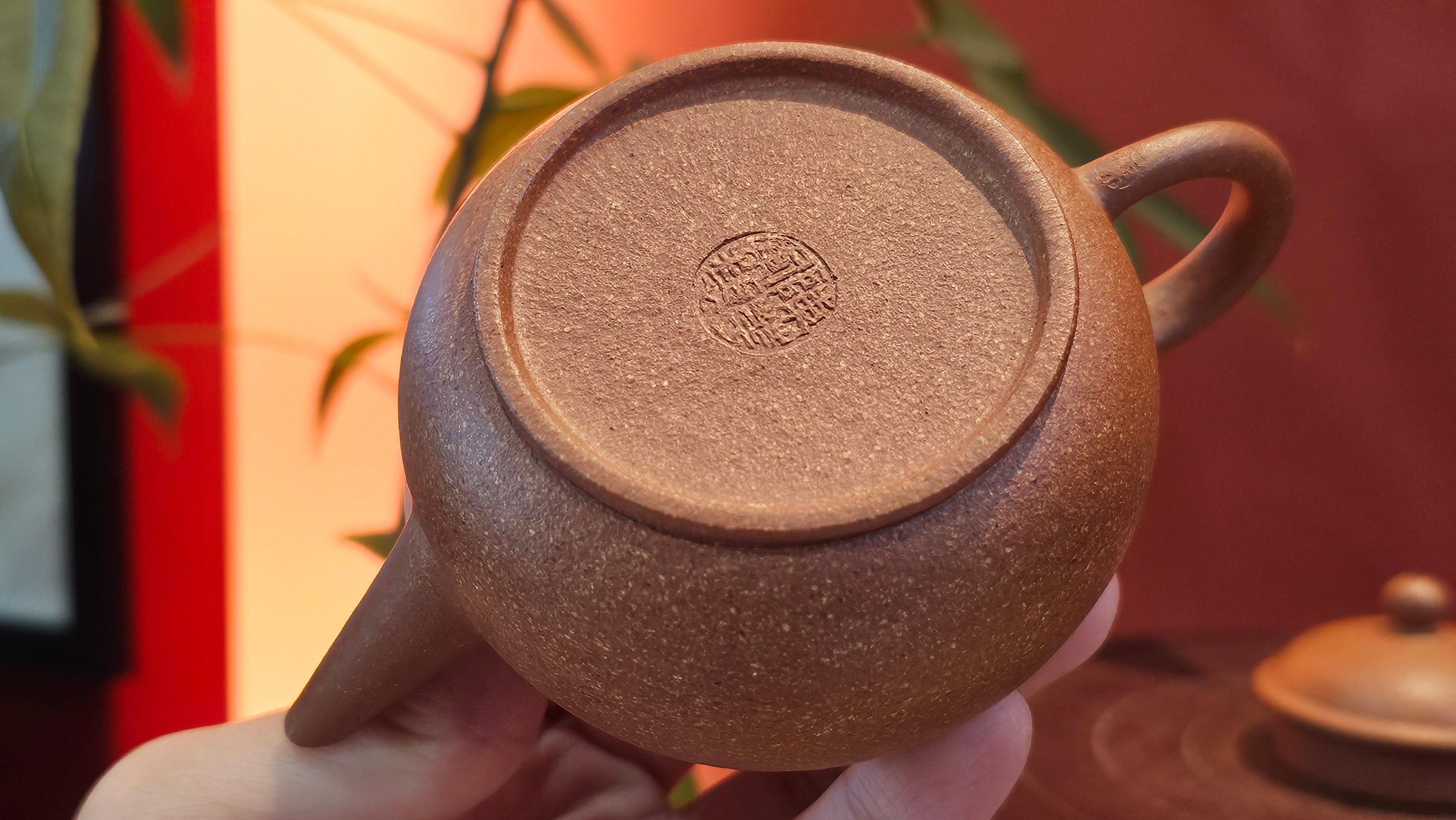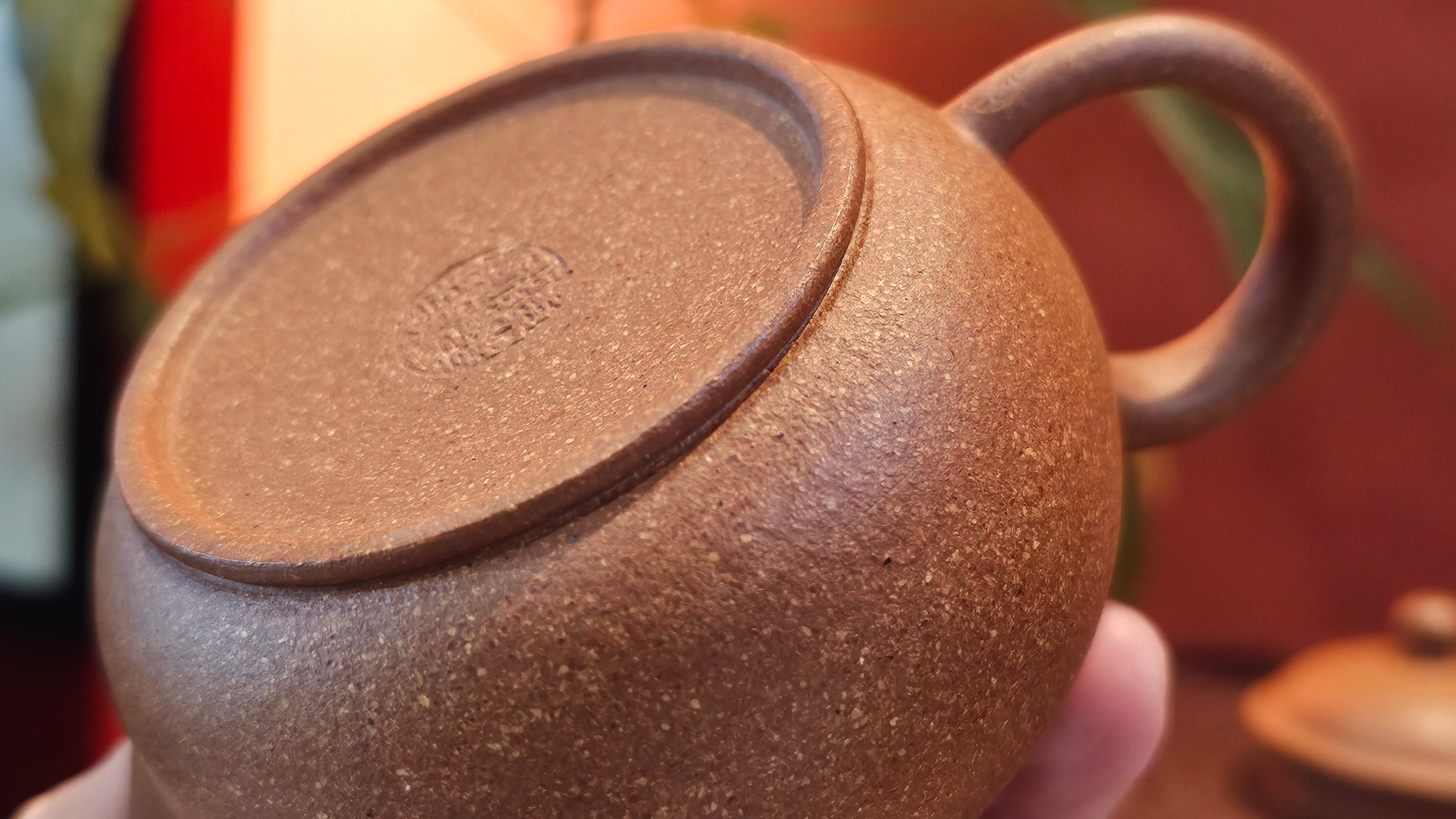 Craftsman Chen also conscientiously sculpted a 手推内球孔 Hand-Pushed Spherical Filter to increase the number of filter holes for a solid and fast pour of tea out, working with the largish diameter spout; and with better catching of tea leaves at the bottom fast while allowing tea to flow out from the upper holes.