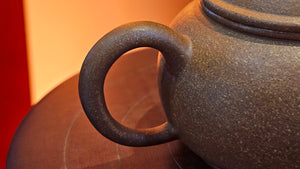 The lines and detailing speak of Craftsman Chen Hua Jun's EXTREME CARE AND TIME taken to craft each part, each pot. Hold one, hold up one, swing the work around. Carefully examine his Fully-Handmade work. Look at it from afar, from near, and it will grow on you, with fine detailing with MUCH THOUGHT on each part, with MUCH TIME spent on every part, section. Because this is what Fully-Handmade ZiSha Art should be, and HOW FULLY-HANDMADE ZISHA ART is so different from and light years ahead of the ubiquitous jigger-machined pots and half-handmade pots masquerading under the sales tagline of "fully-handmade zisha" pots. These latter JM/HHM pots are made in what we call 流水线 a.k.a. 'Factory-Line operation' whereby the main pot body after being jigger-machined or coming off from the mould, is passed to the next worker who fits on the spout, and subsequently this second worker will pass the pot on to another worker who will in turn fit on the handle. Continuing so, the pressed lid is likewise passed to another worker who fit on the lid knob. EACH WORKER has NO IDEA what the other one is doing, and they are always working on fixed time lines stated by the boss. For example, the worker being "passed the baton" a pot with the spout just fixed onto the body by his colleague, will only focus on fixing on the handle, with nil to little regard to WHETHER THE HANDLE fixed on will be cohesive with the spout. Each worker has NO idea of HOW THE FINAL POT WILL LOOK LIKE. Beyond poor craftsmanship and clay, the result of such processes are ugly pots with poor cohesiveness which experienced Artists, Craftsmen and collectors will tell from a metre away. Experienced people in us, do not need to pick up a pot to check whether it is fully-handmade or made of zisha, we can tell from a metre away just by looking at the pot.