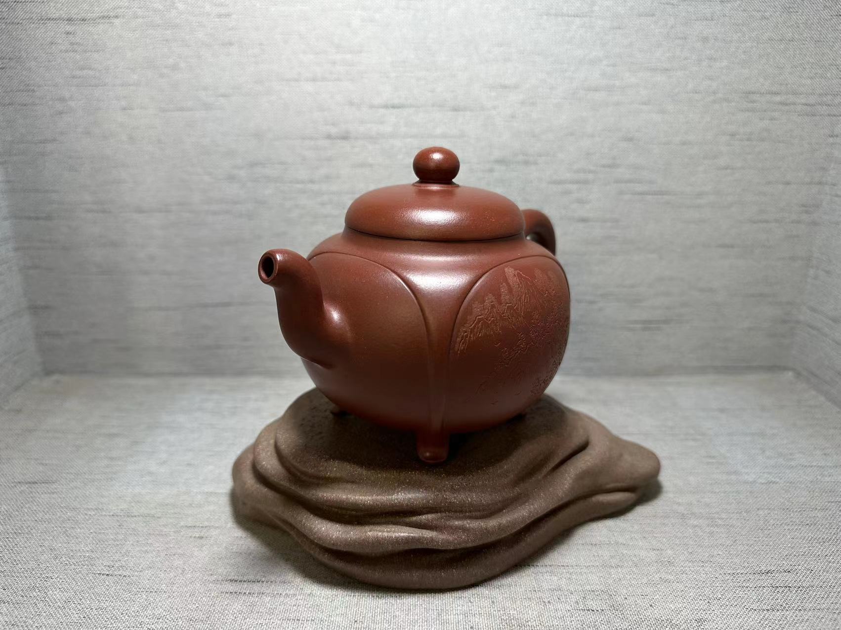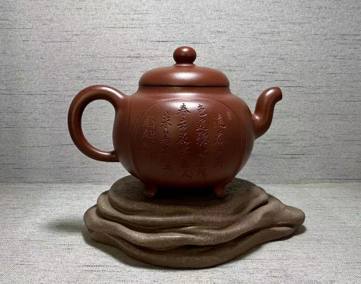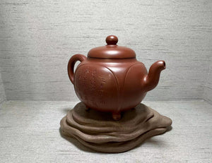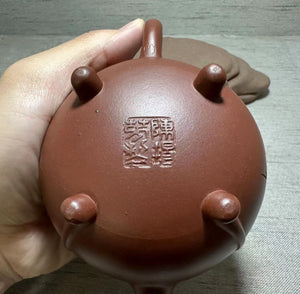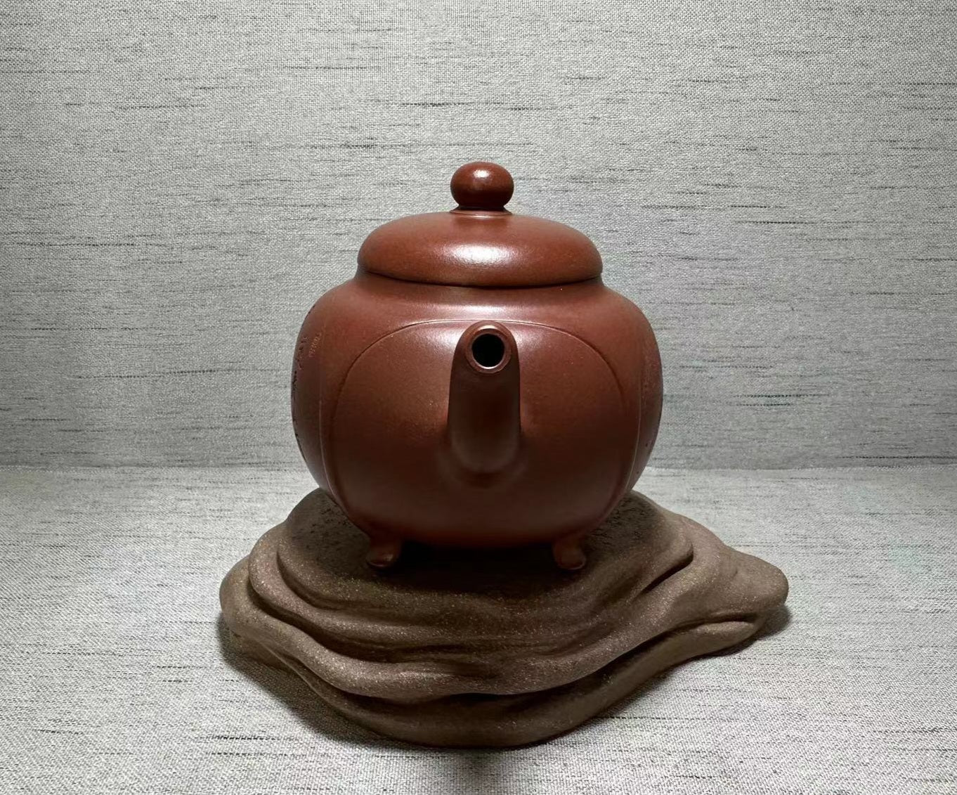Si Fang Ding Sheng 四方鼎盛, 320ml, Hong Pi Long 红皮龙, by Assoc Master Artist Chen Xi Fang 助理工艺美术师~陈锡芳。*Certificate additionally stamped with our “真紫砂” STAMP & serialised with the unique 5rmb note before shipping to you.