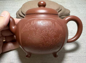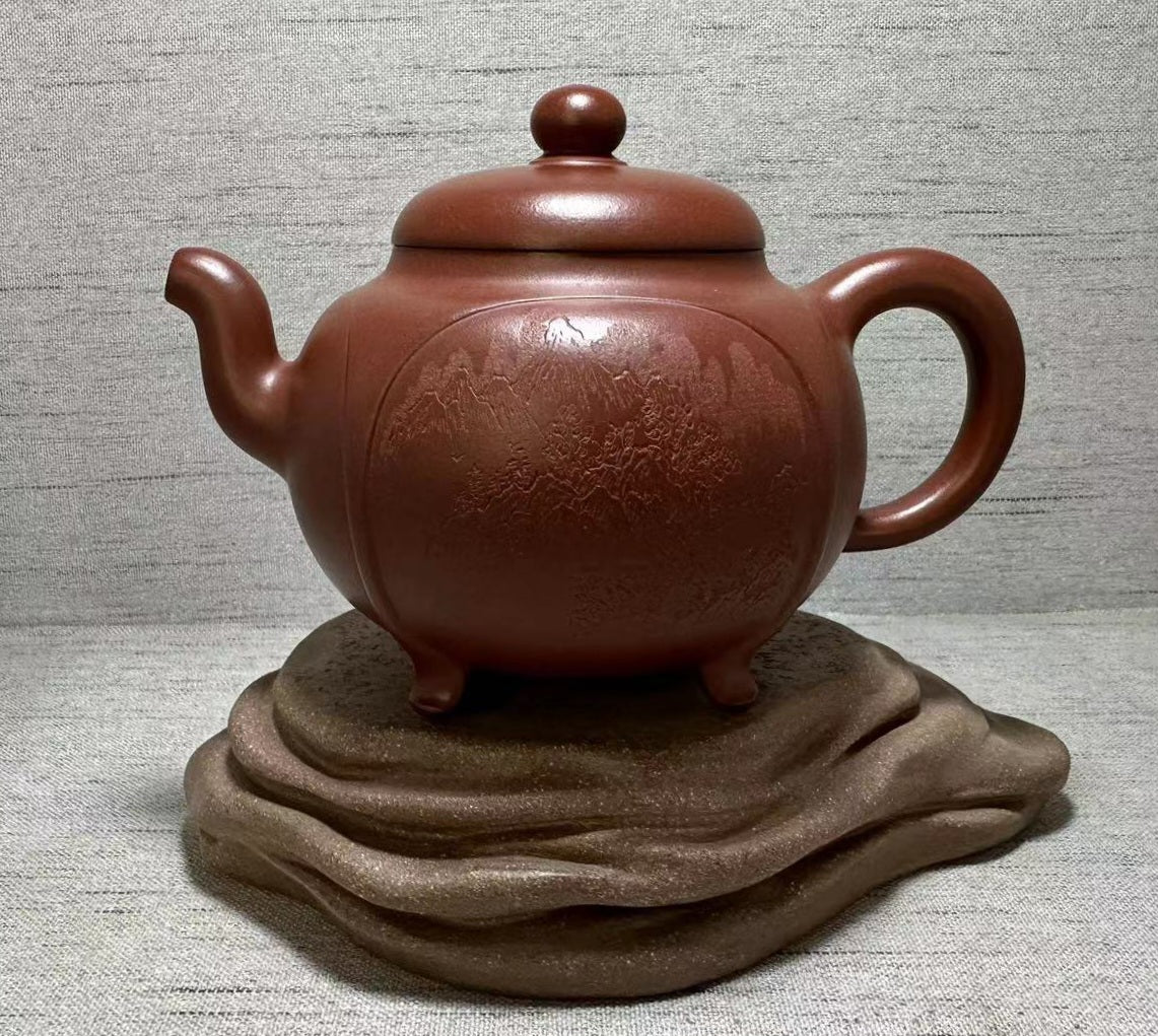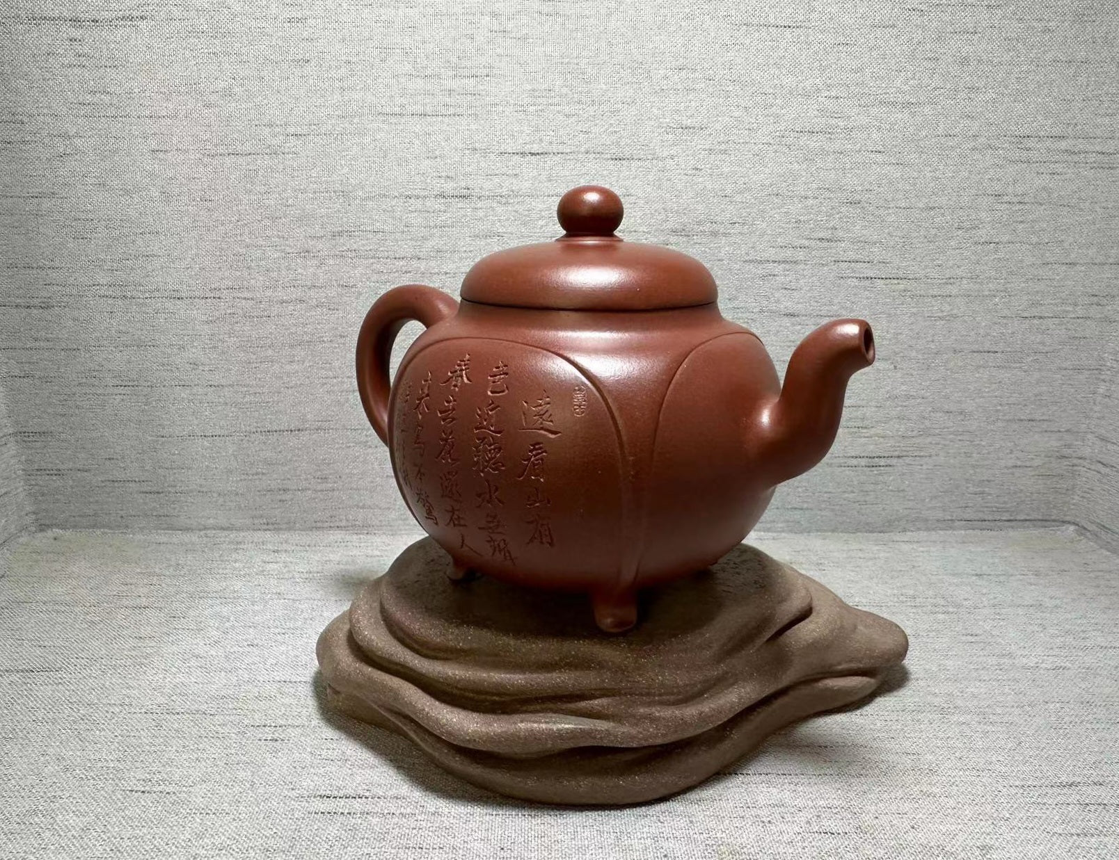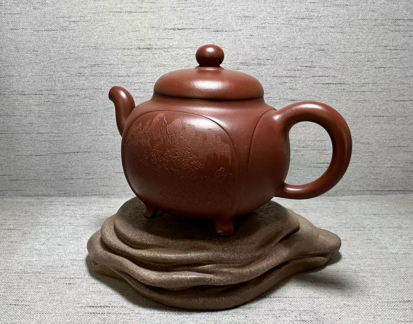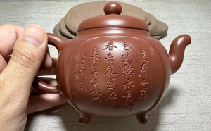 Si Fang Ding Sheng 四方鼎盛, 320ml, Hong Pi Long 红皮龙, by Assoc Master Artist Chen Xi Fang 助理工艺美术师~陈锡芳。*Certificate additionally stamped with our “真紫砂” STAMP & serialised with the unique 5rmb note before shipping to you.