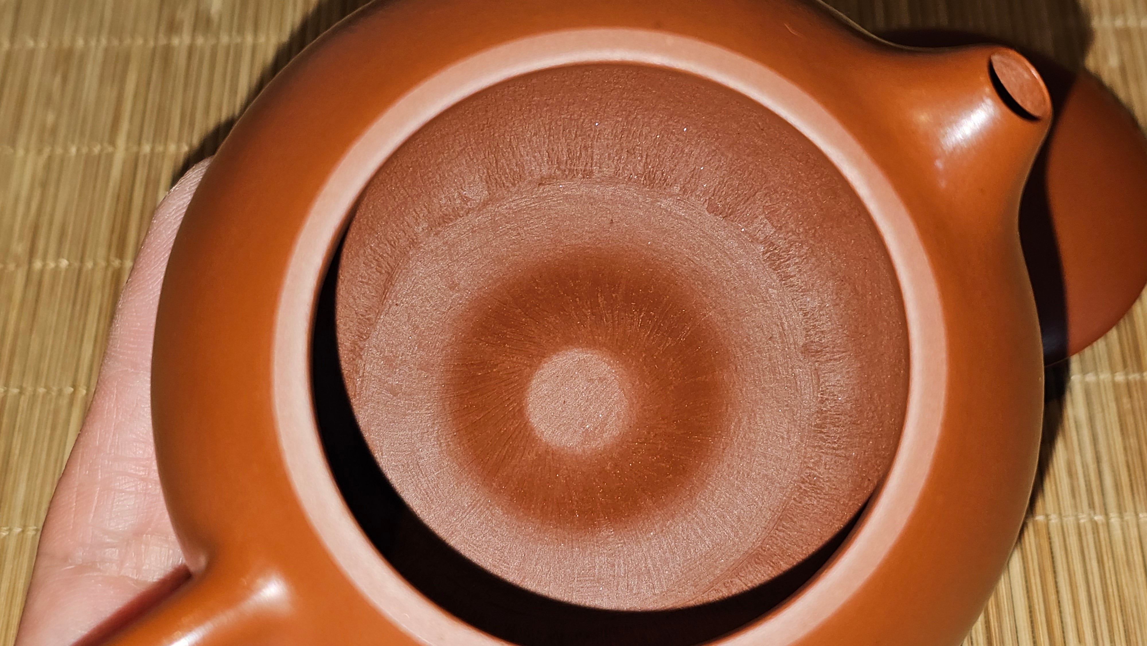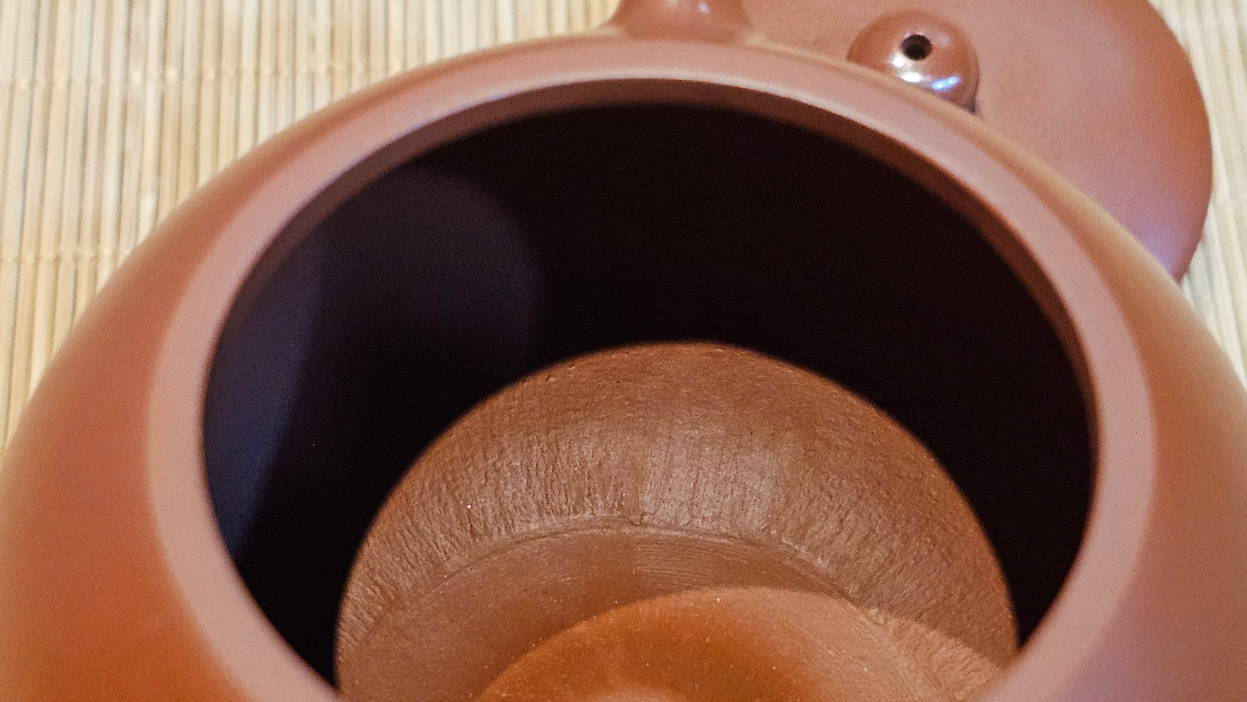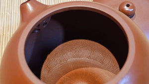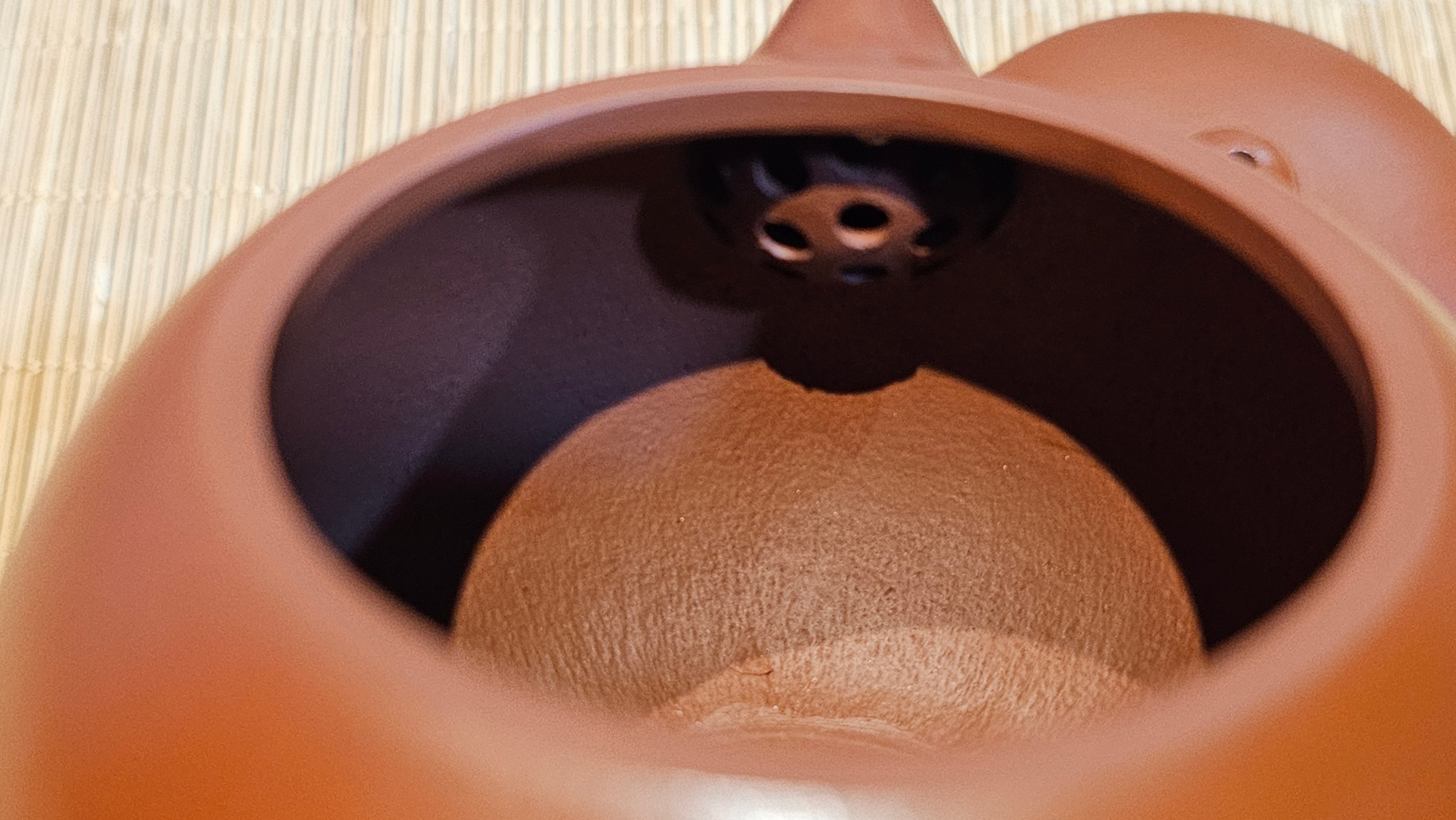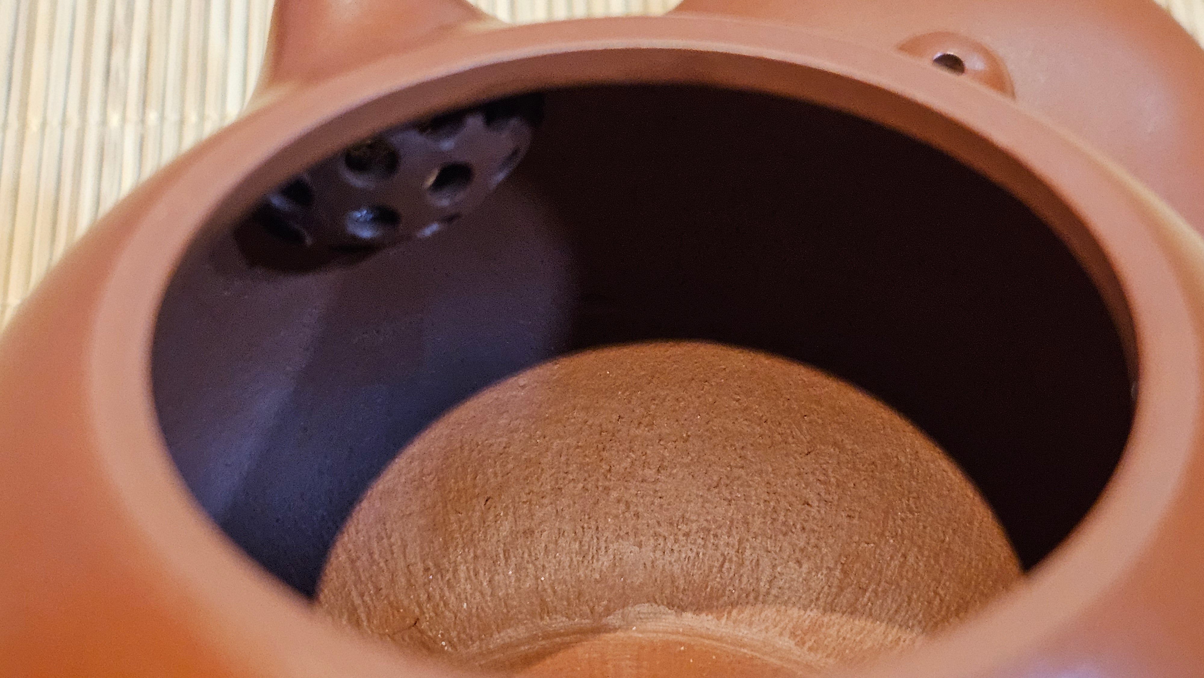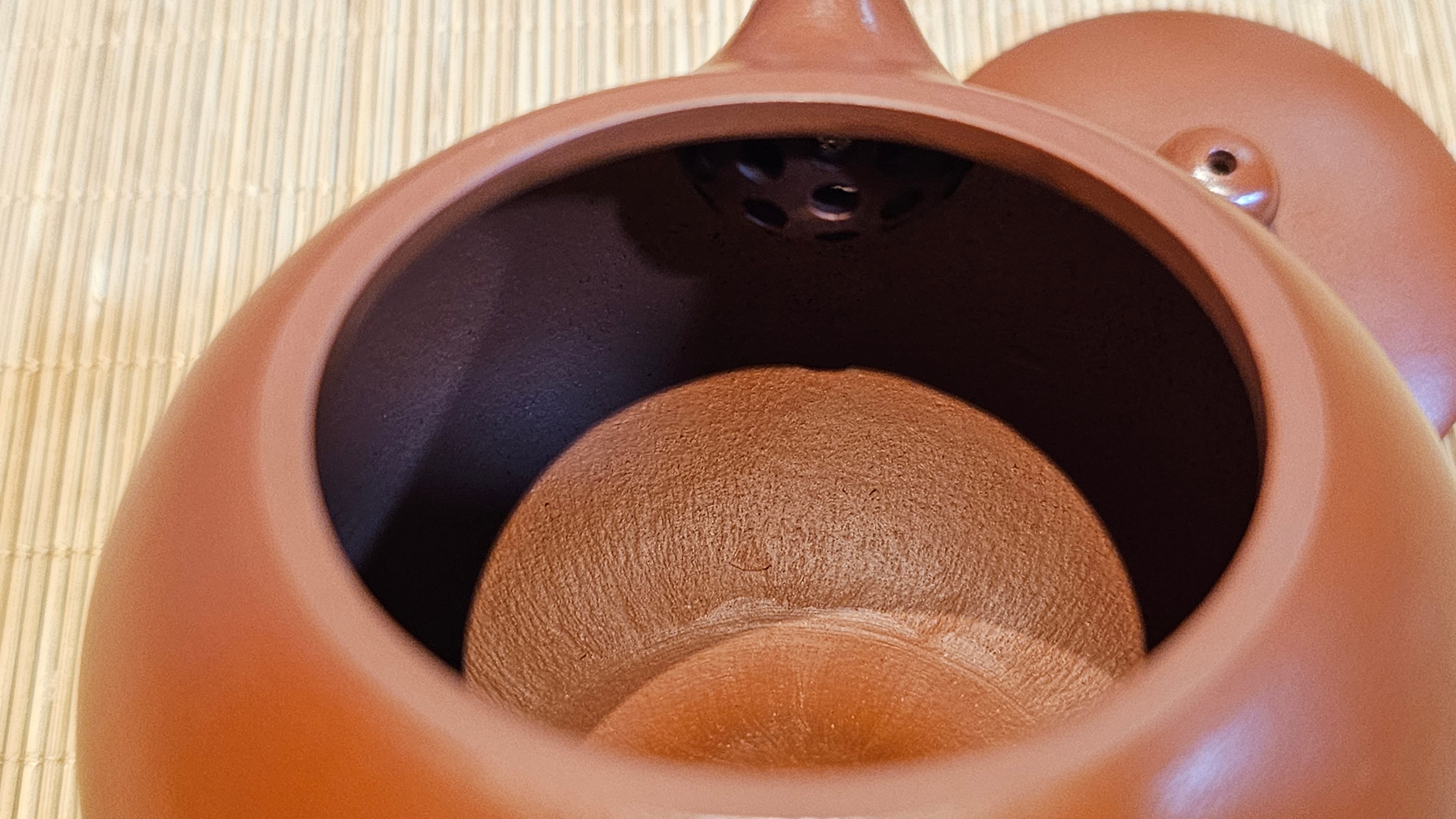 3.  Craftsman Zhai also conscientiously sculpted a 手推内球孔 Hand-Pushed Spherical Filter to increase the number of filter holes for a solid and fast pour of tea out, working with the largish diameter spout; and with better catching of tea leaves at the bottom fast while allowing tea to flow out from the upper holes.
