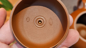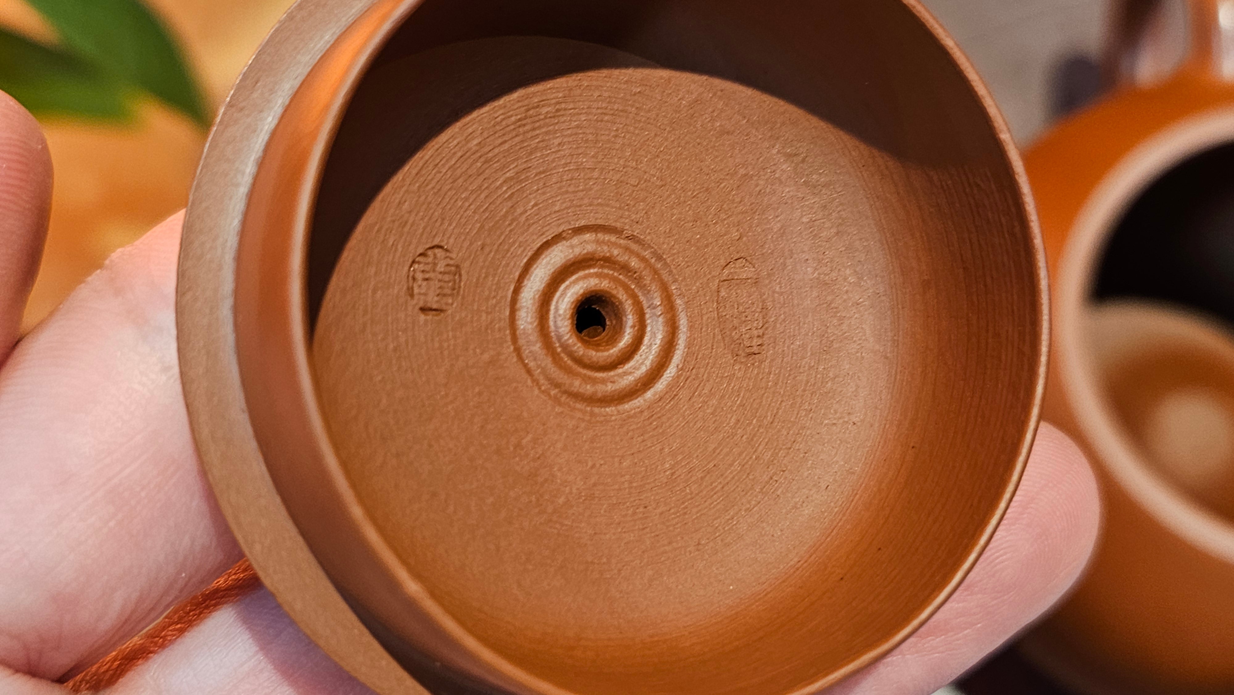 Note on our TRUE Fully-Handmade Zhu Ni pots from RealZiSha: NOT those thick-/irregular-thickness-walled ones which are actually fake "Fully-handmade ZhuNi pots" utilising the cheating new technology: "车一刀 Che Yi Dao": Such ZhuNi pots utilizing Che Yi Dao process, have been sprouting up in the market since early 2022. Che Yi Dao involves a swivelling-rotational cutter that goes around a roughly-finished ZhuNi pot to cut the outer surface into a perfect shape. This cutter obliviates the need of accomplished skill of a true Fully-Handmaking Craftsman. Obviously, Che Yi Dao also absolves the need of a skilled FHM Craftsman to 1)pound the slab into a careful thin-slab, 2)paddle-pat the slab into a uniform shape purely manually.