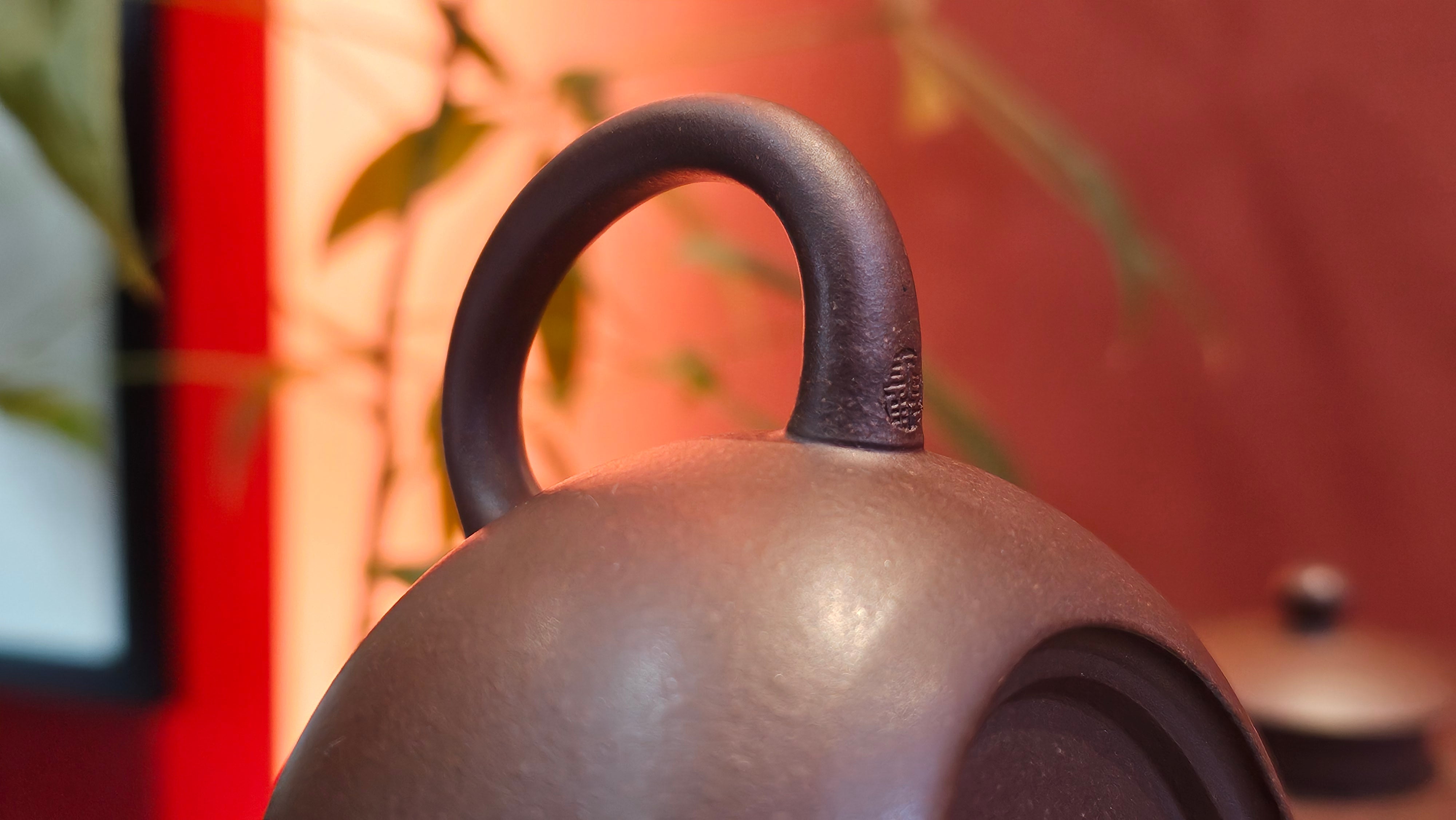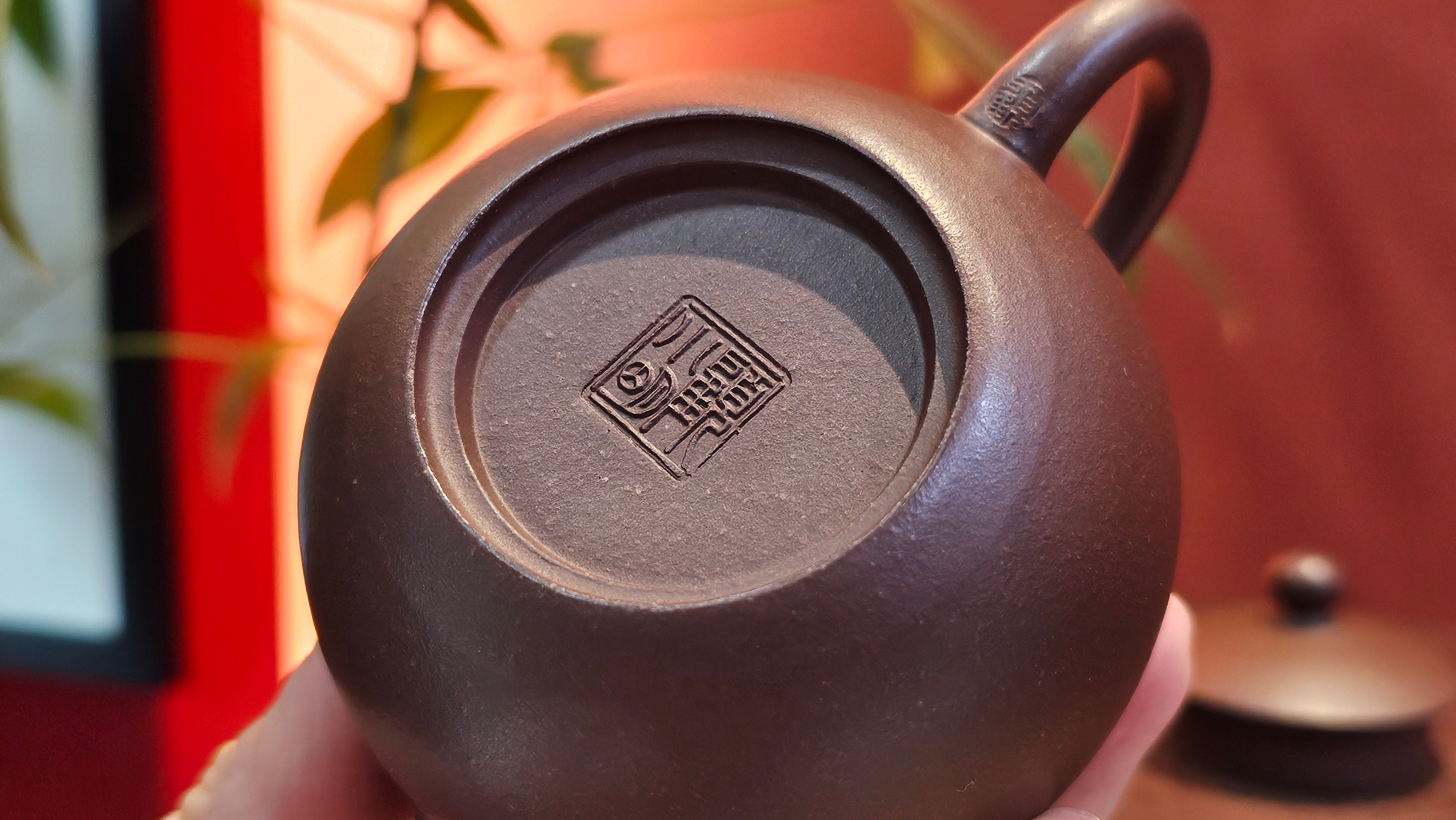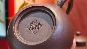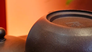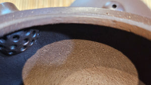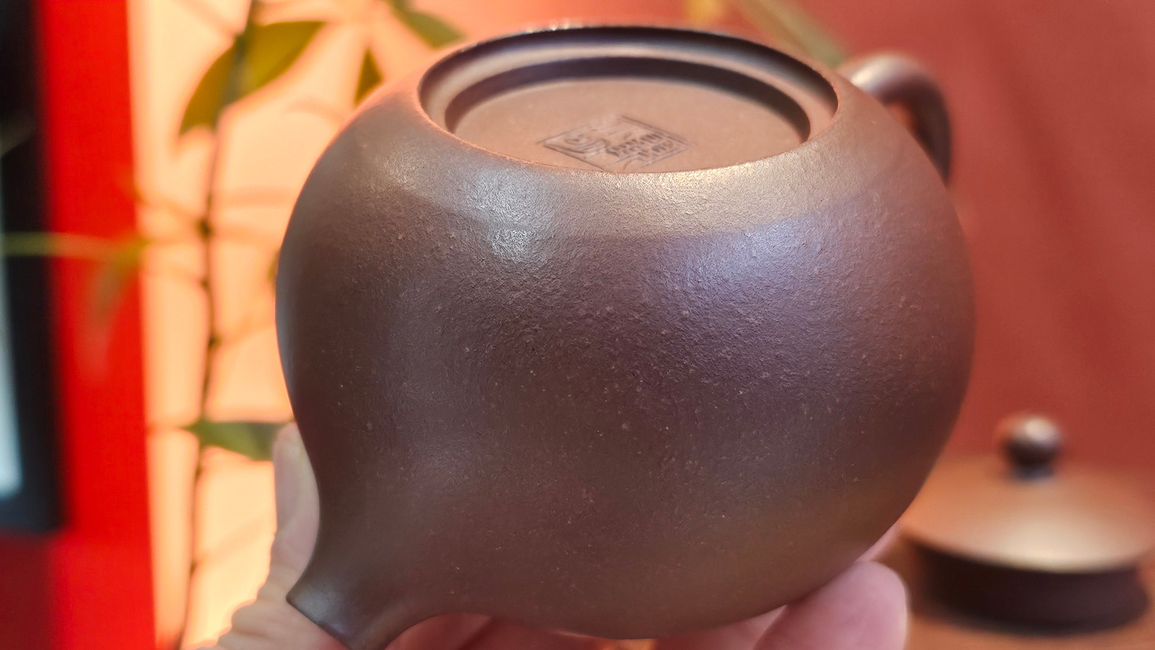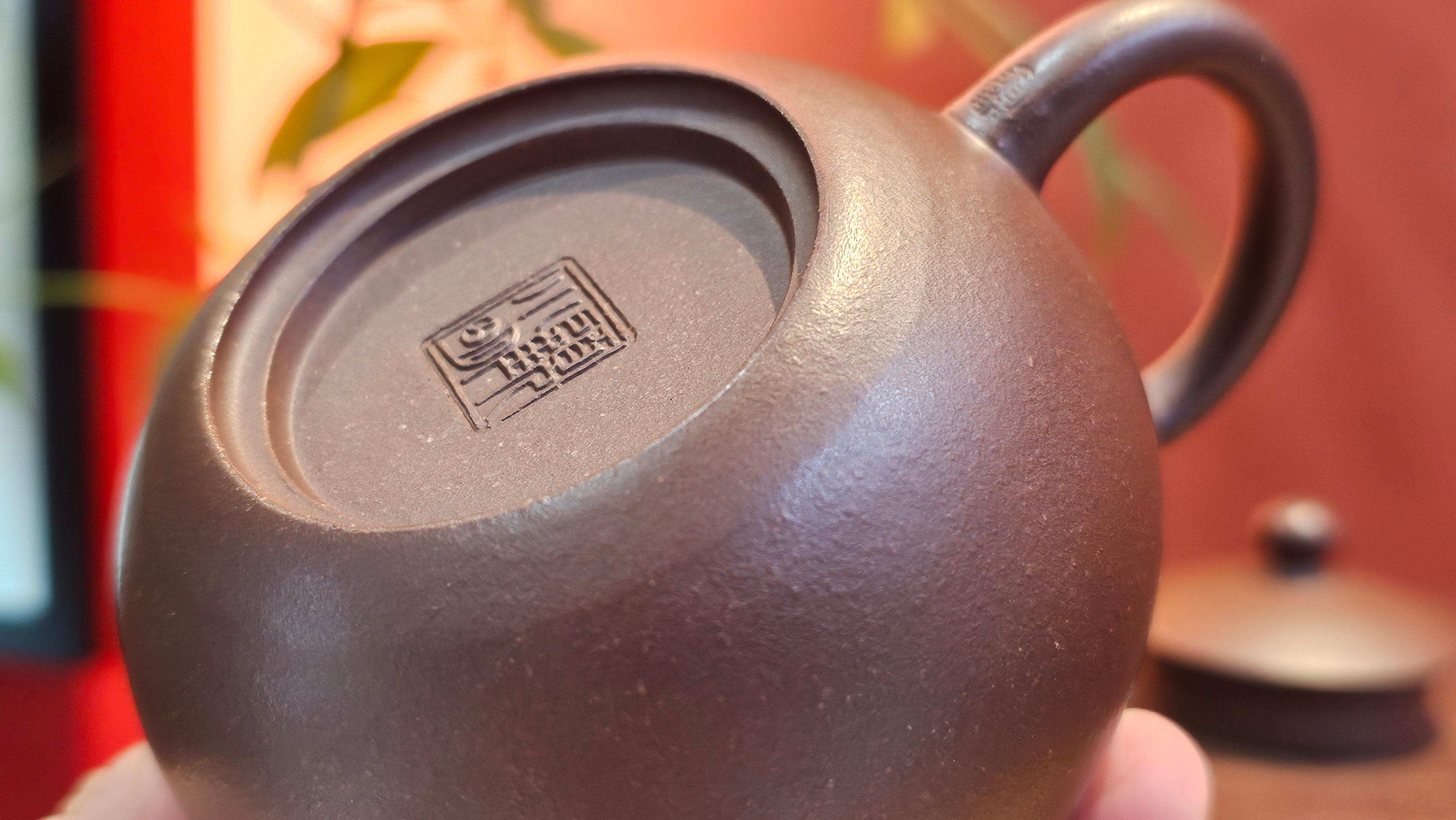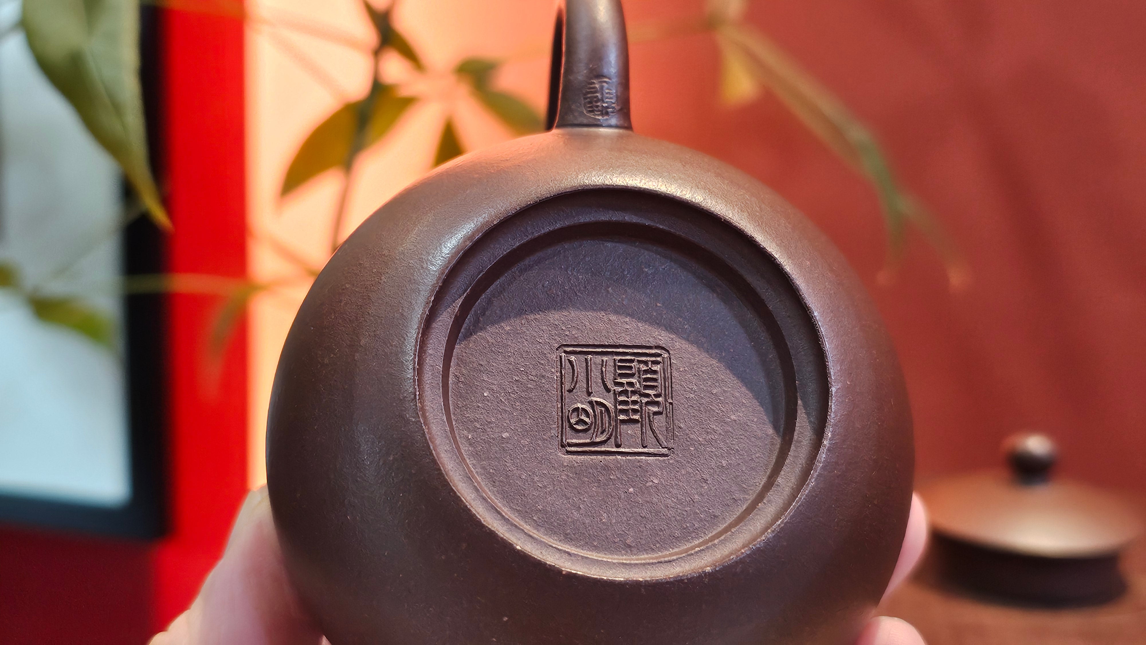 2. Craftsman Gu also conscientiously sculpted a 手推内球孔 Hand-Pushed Spherical Filter to increase the number of filter holes for a solid and fast pour of tea out and with better catching of tea leaves at the bottom fast while allowing tea to flow out from the upper holes. The Fraternity-recognised: Puffer Fish silhouette iteration of this Xi Shi spout, is also crafted here, which accommodates the more generous lumen/outflow, FURTHER accentuating and aiding the swiftness of pour.