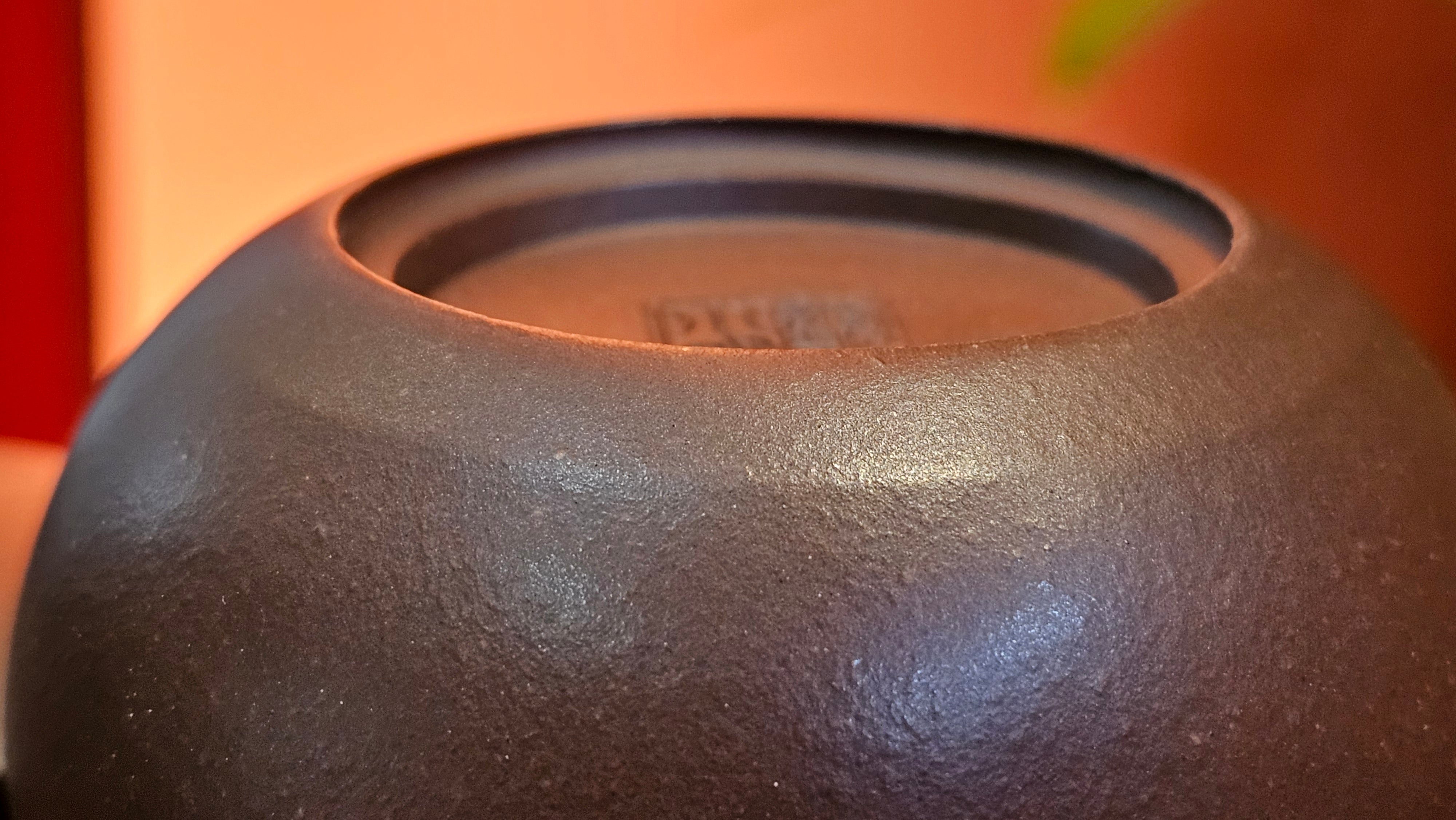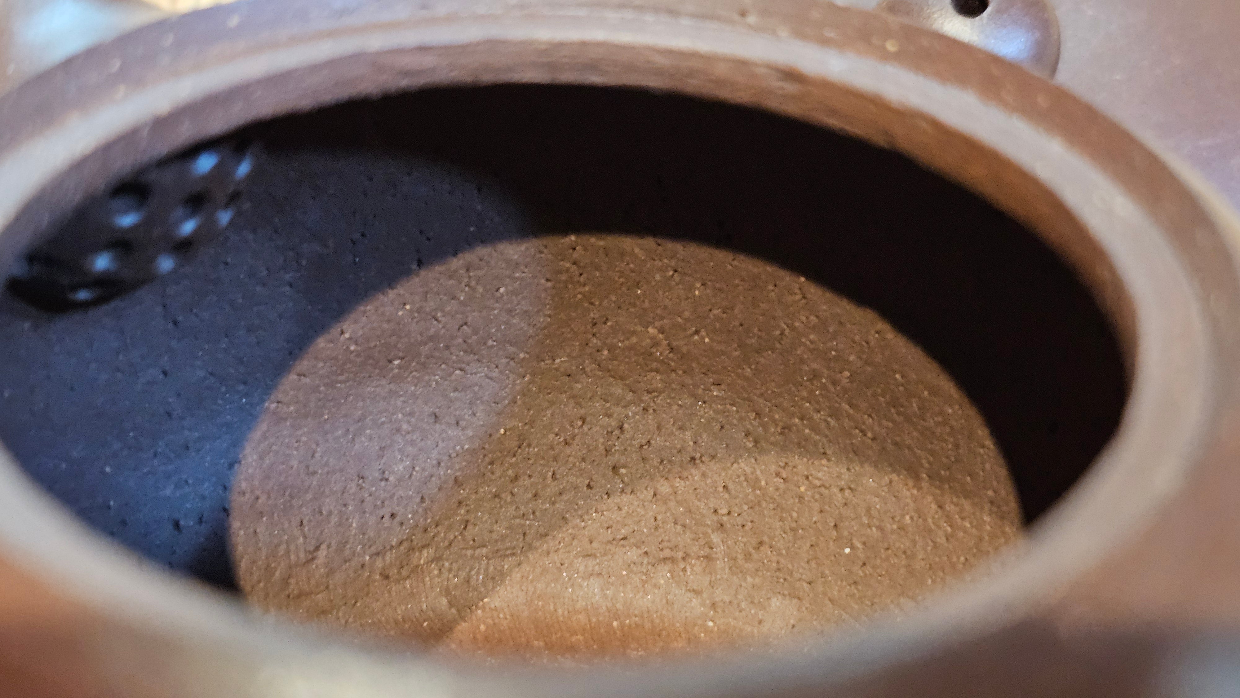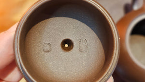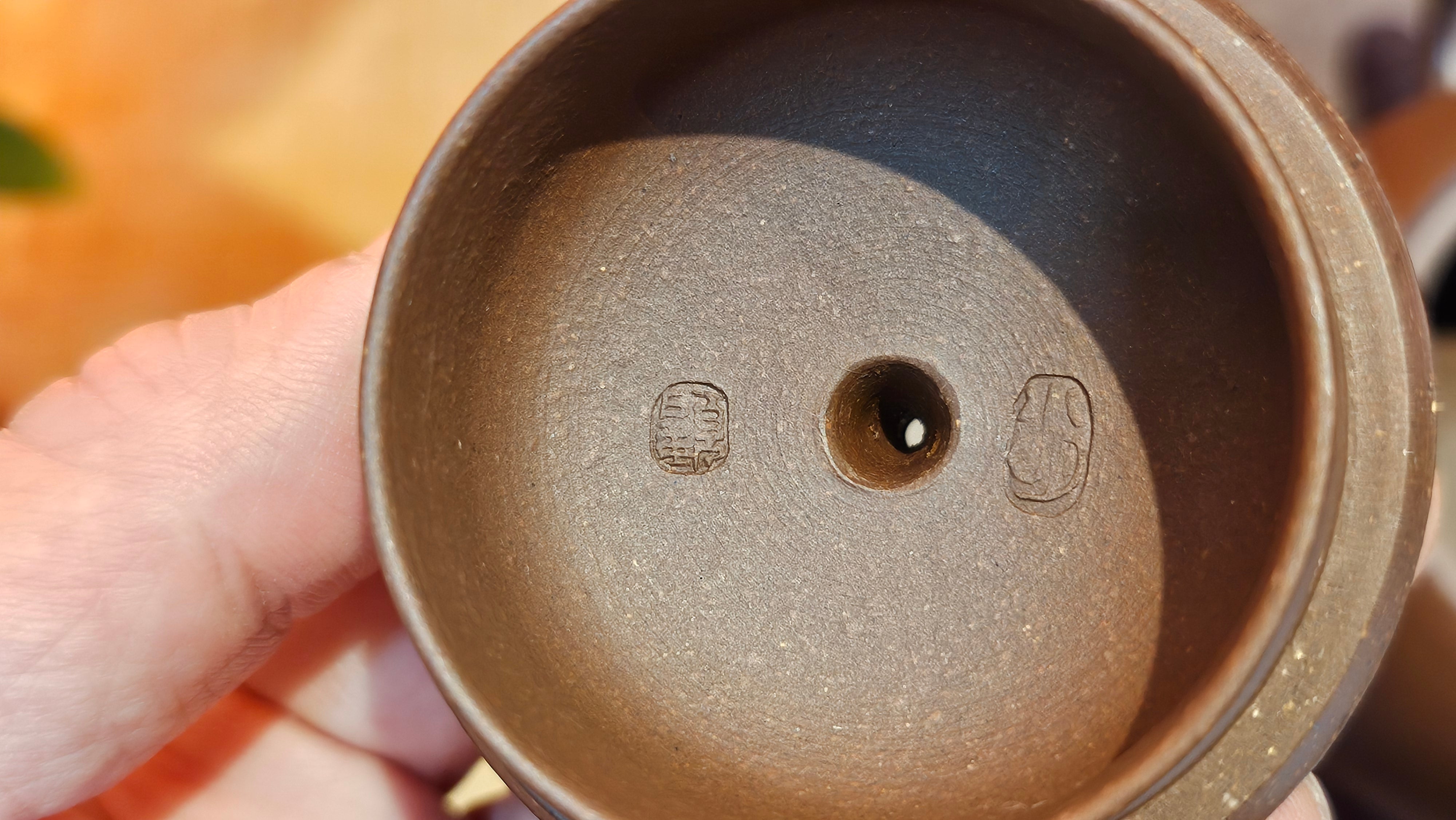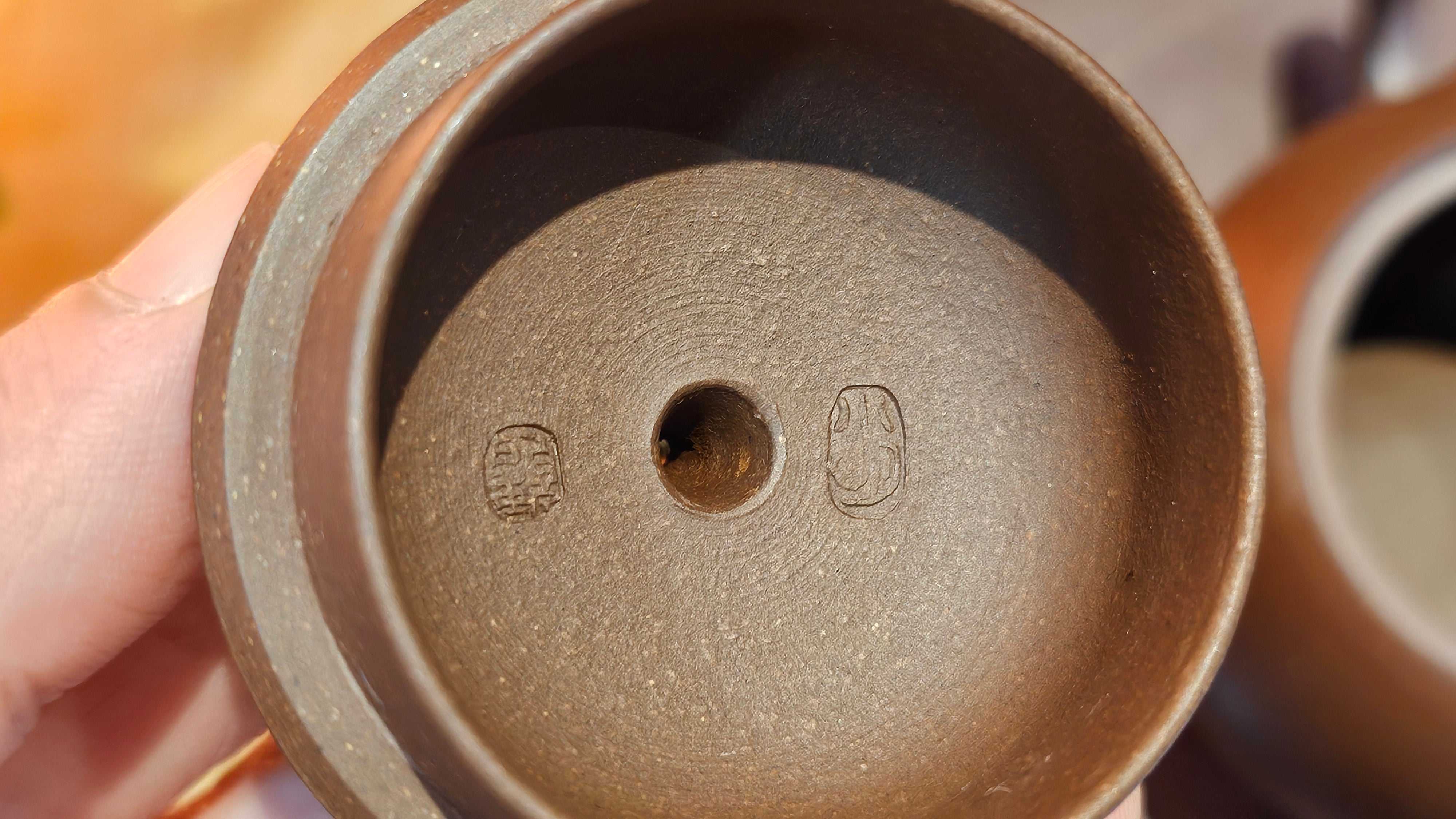 2. Craftsman Gu also conscientiously sculpted a 手推内球孔 Hand-Pushed Spherical Filter to increase the number of filter holes for a solid and fast pour of tea out and with better catching of tea leaves at the bottom fast while allowing tea to flow out from the upper holes. The Fraternity-recognised: Puffer Fish silhouette iteration of this Xi Shi spout, is also crafted here, which accommodates the more generous lumen/outflow, FURTHER accentuating and aiding the swiftness of pour.