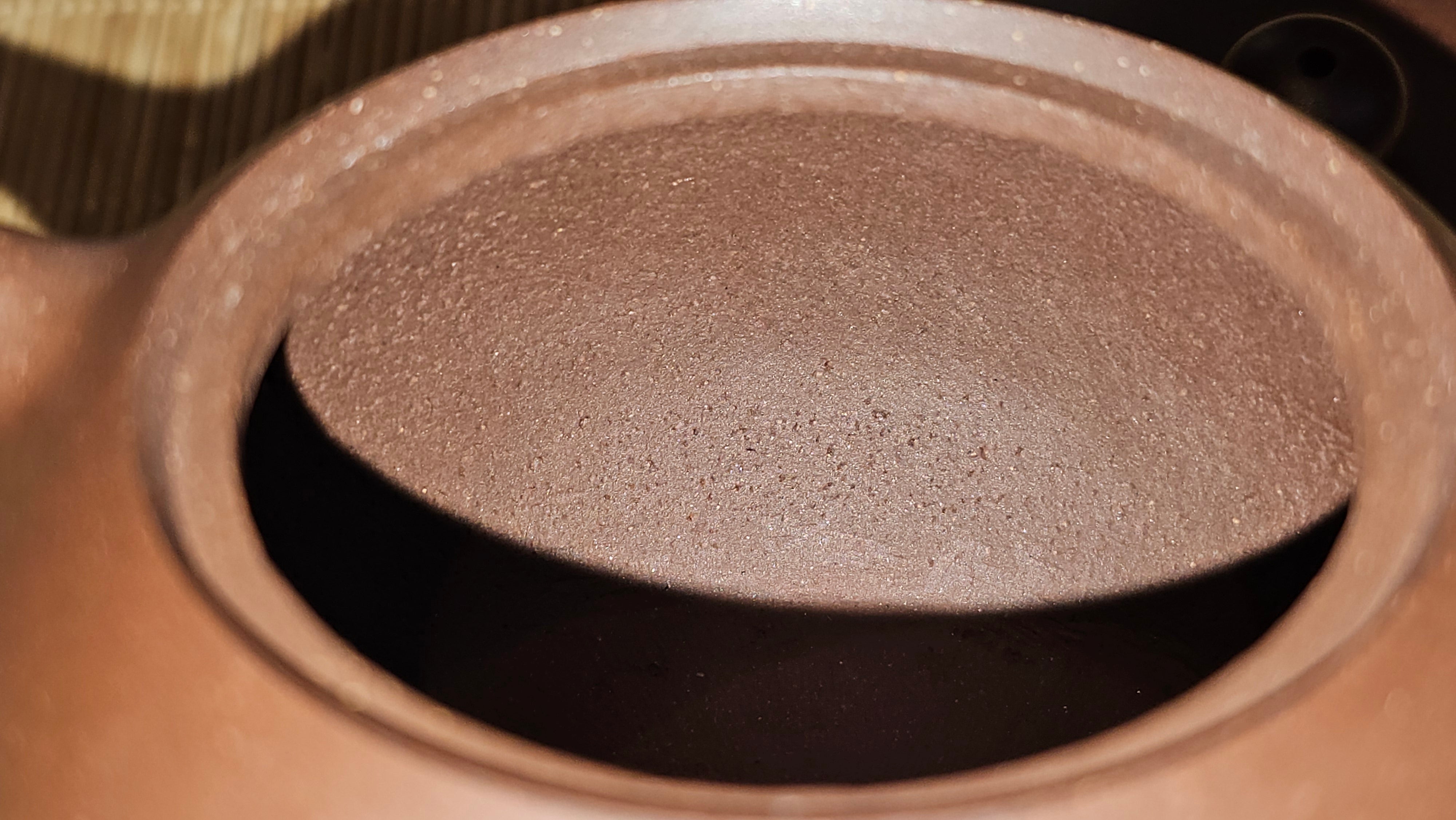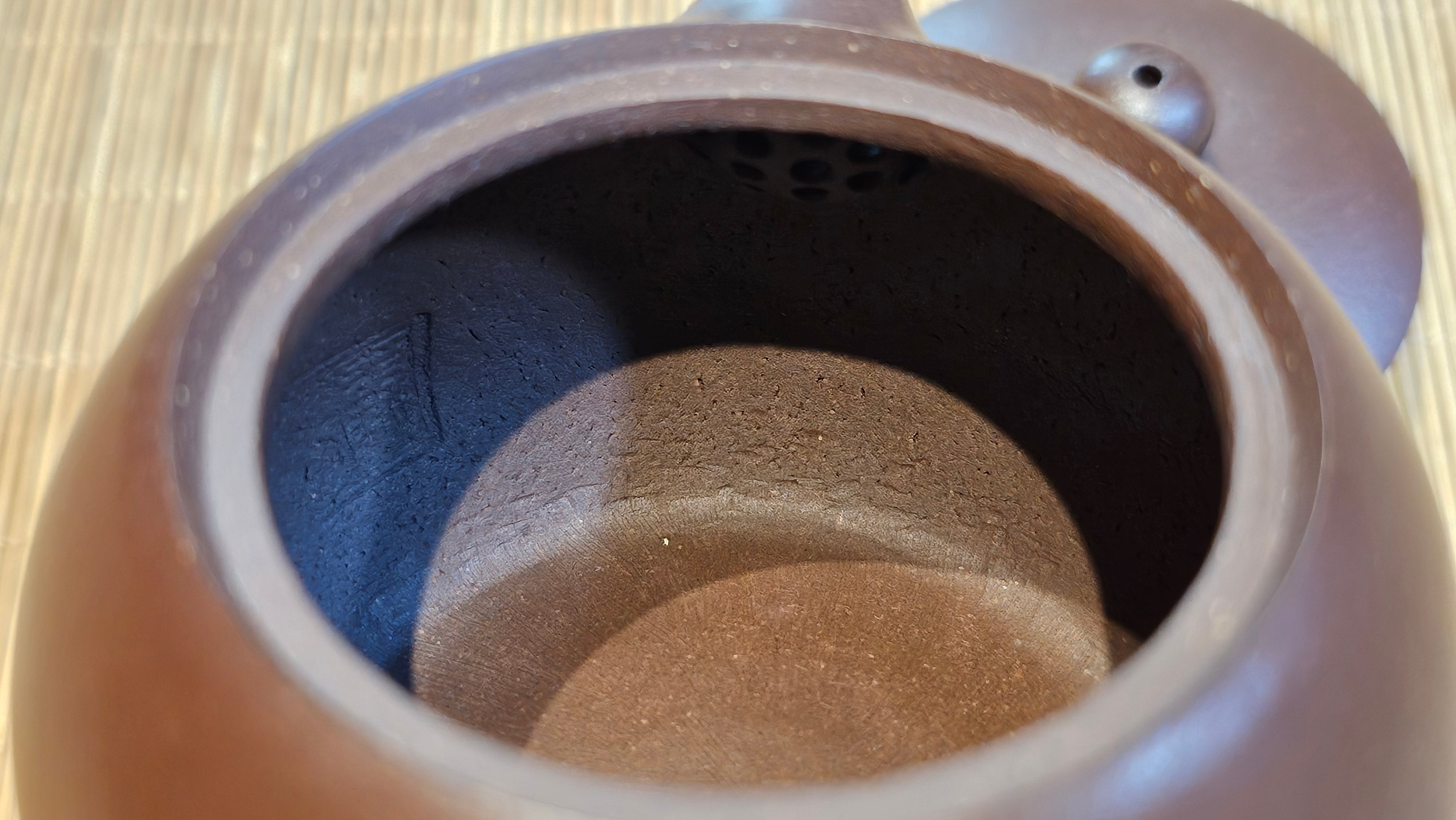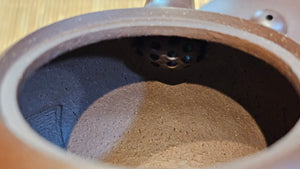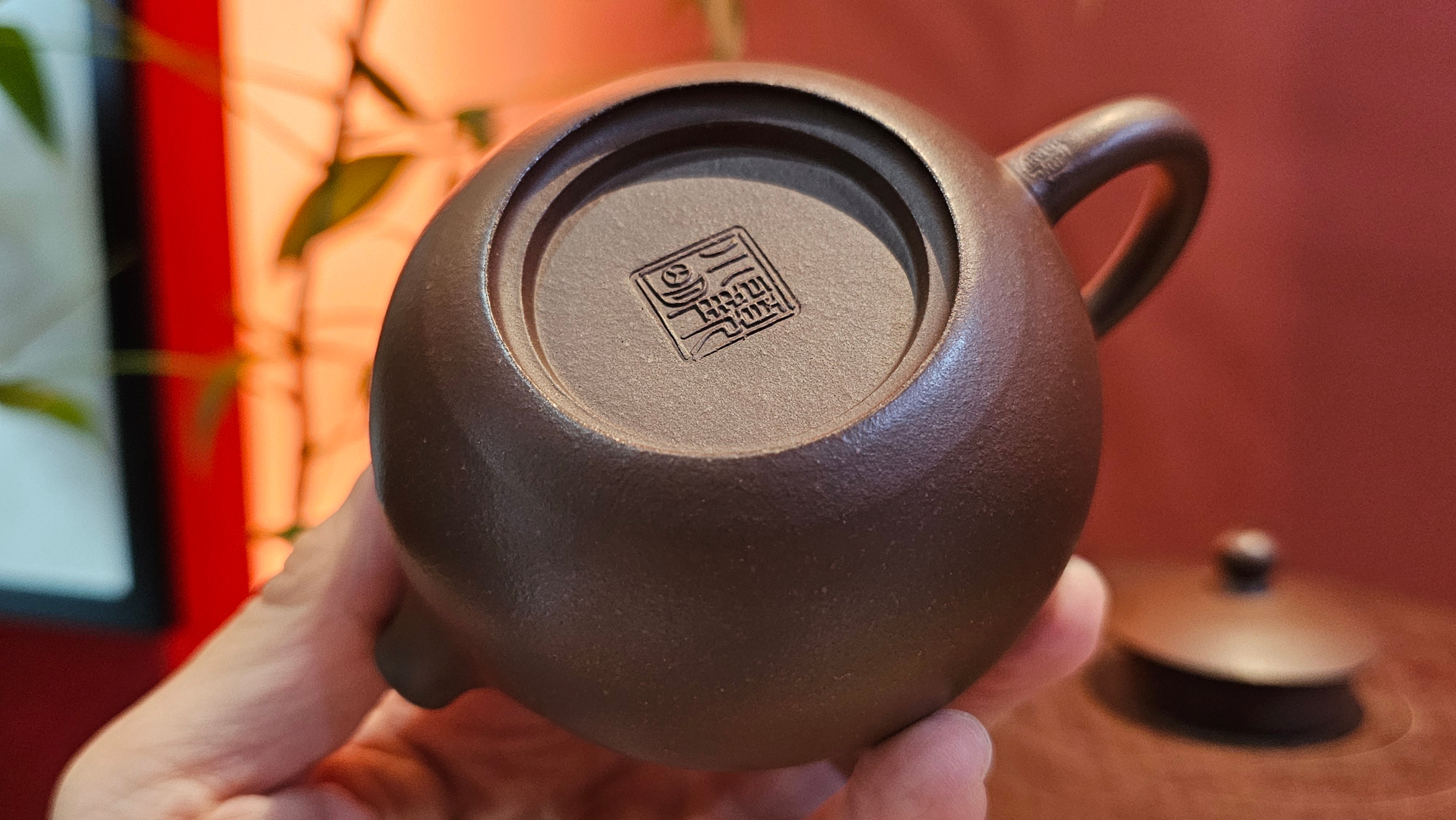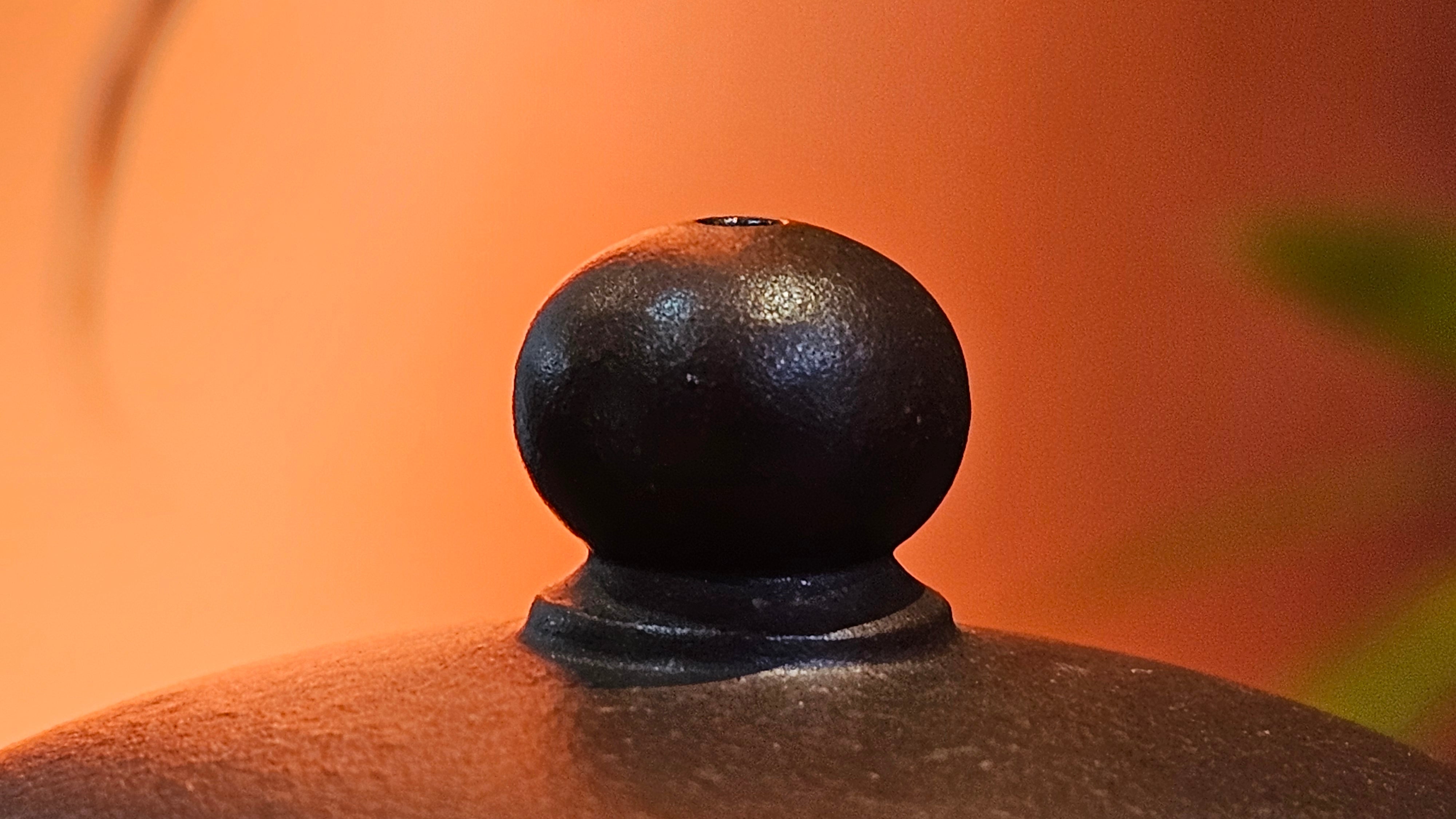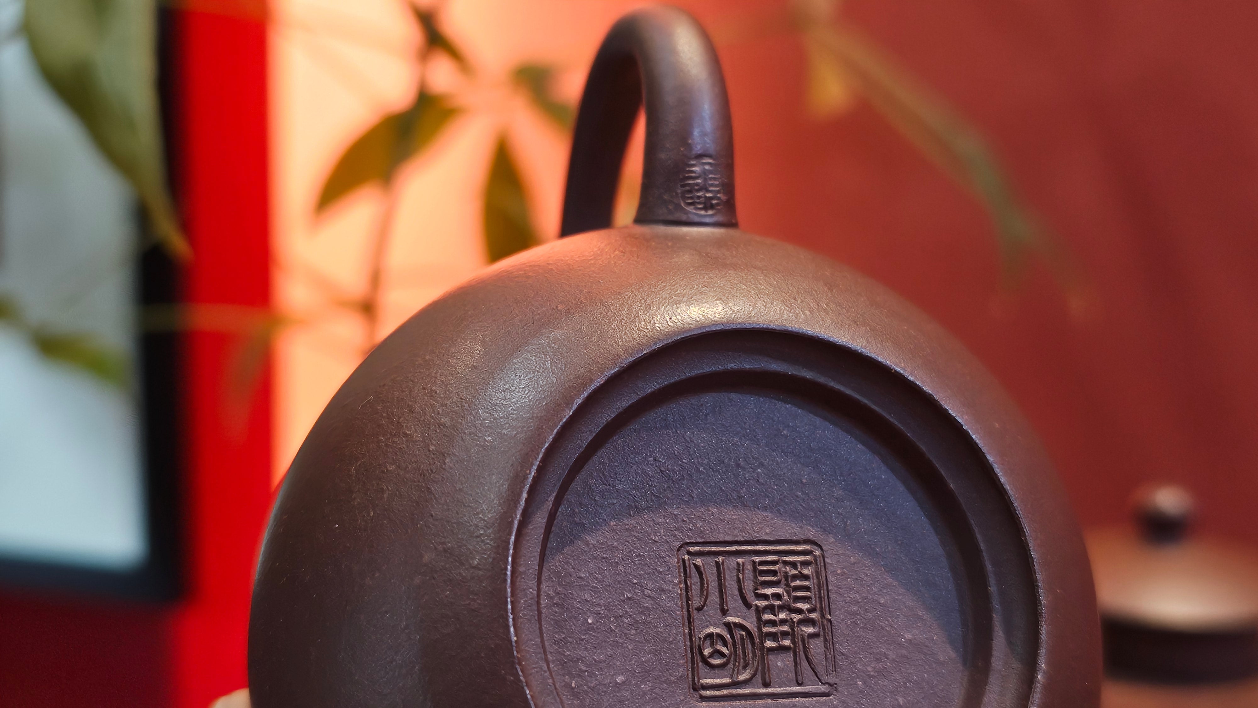 2. Craftsman Gu also conscientiously sculpted a 手推内球孔 Hand-Pushed Spherical Filter to increase the number of filter holes for a solid and fast pour of tea out and with better catching of tea leaves at the bottom fast while allowing tea to flow out from the upper holes. The Fraternity-recognised: Puffer Fish silhouette iteration of this Xi Shi spout, is also crafted here, which accommodates the more generous lumen/outflow, FURTHER accentuating and aiding the swiftness of pour.