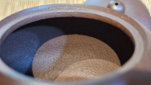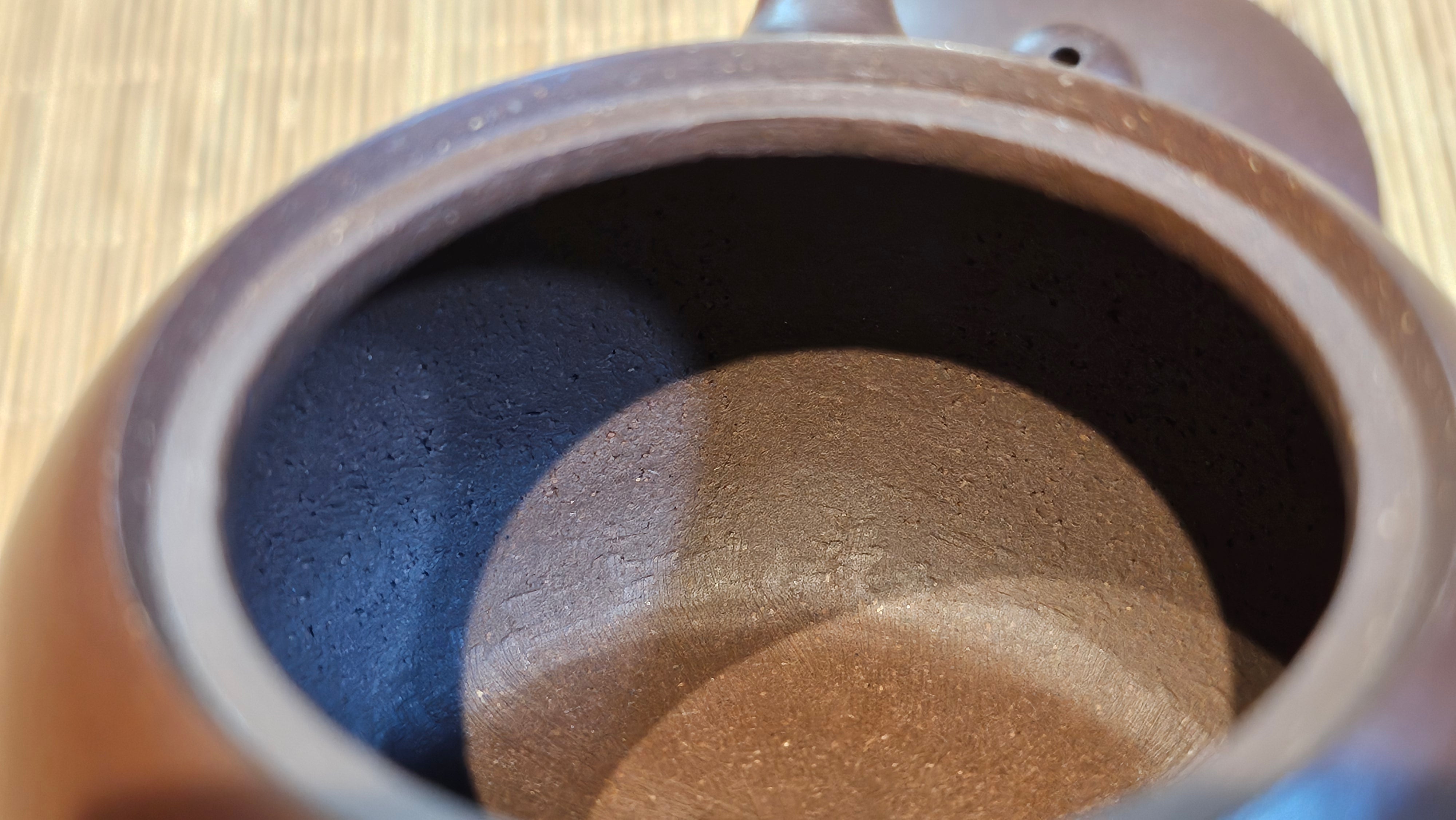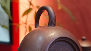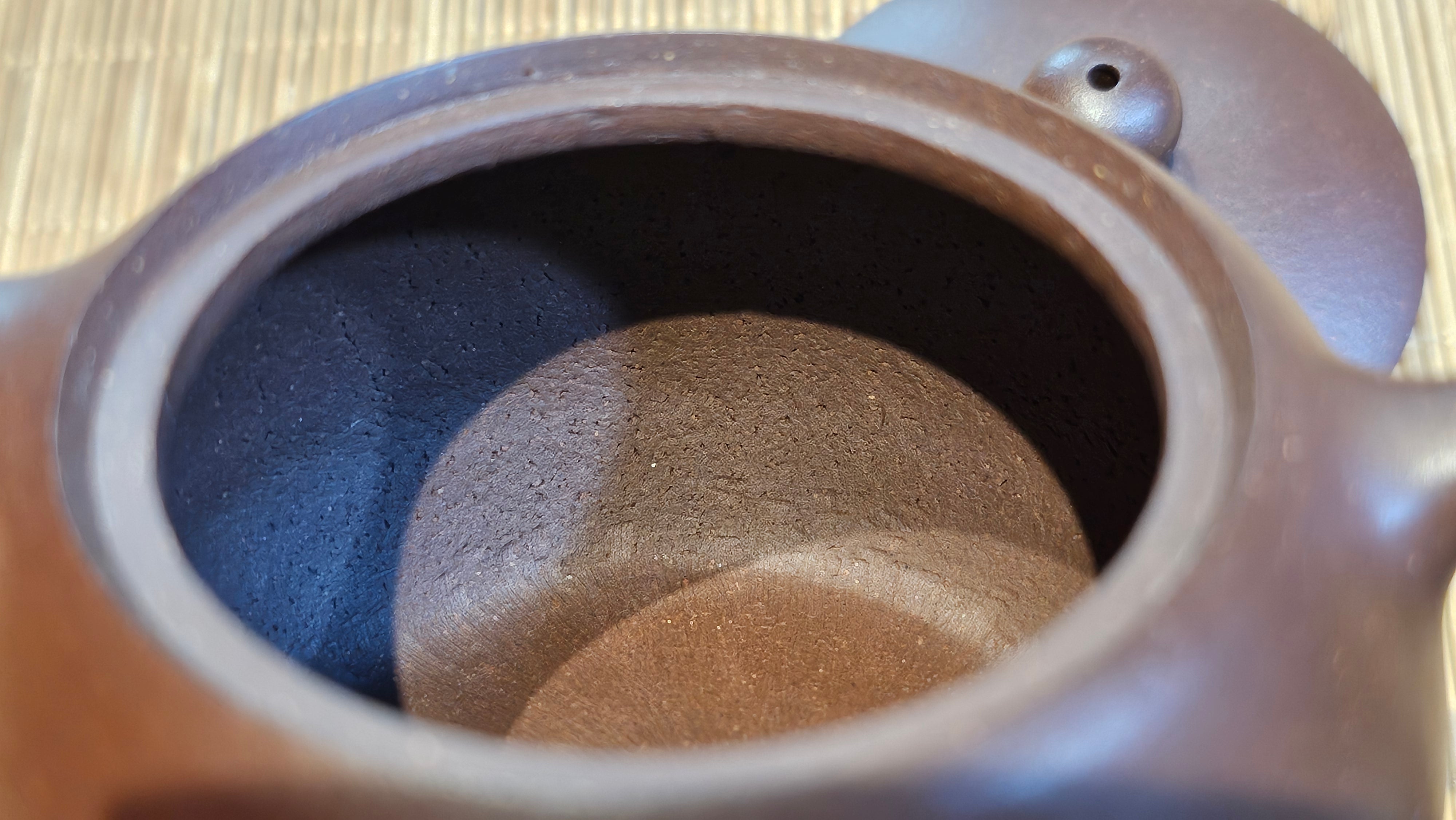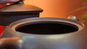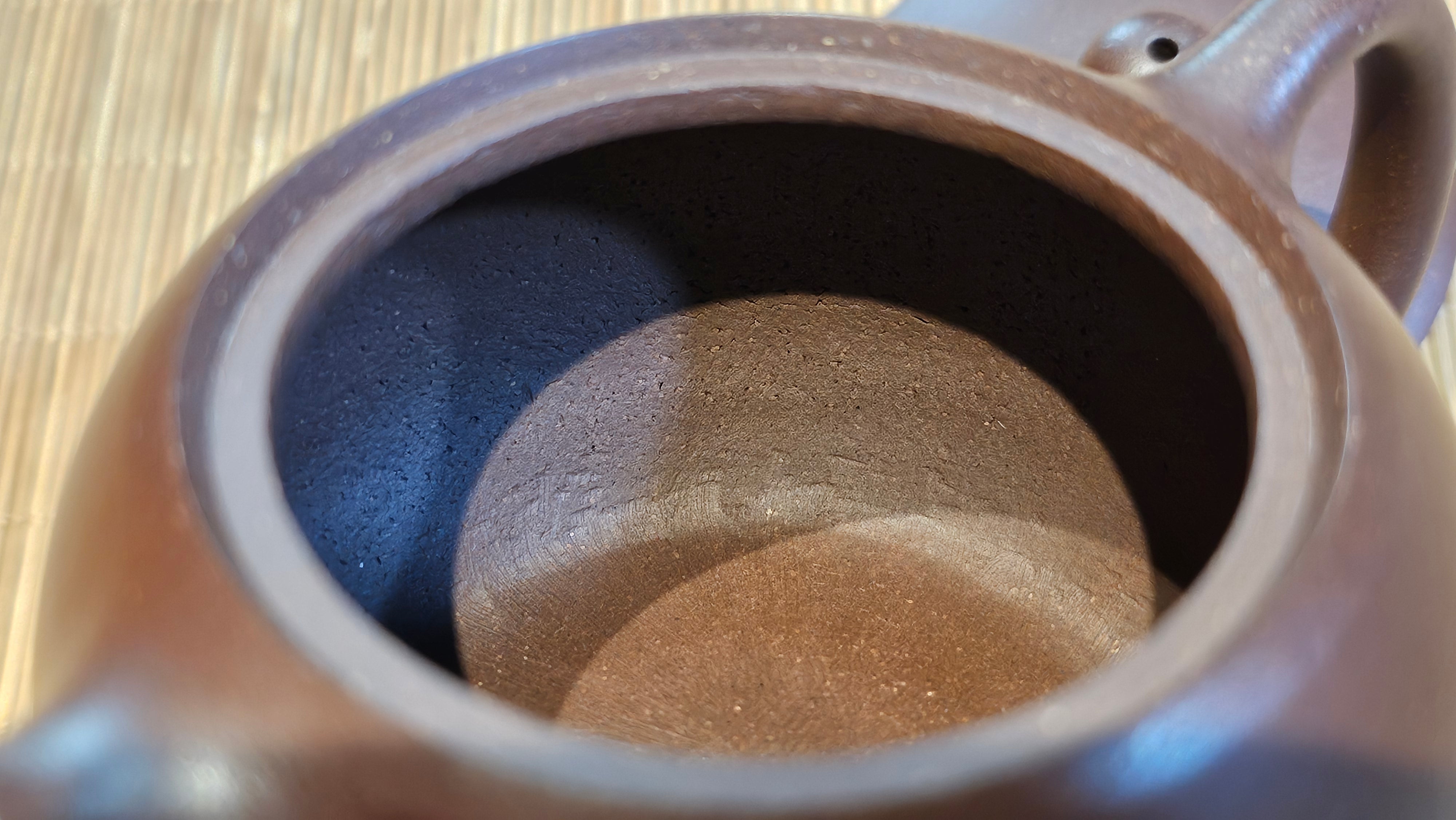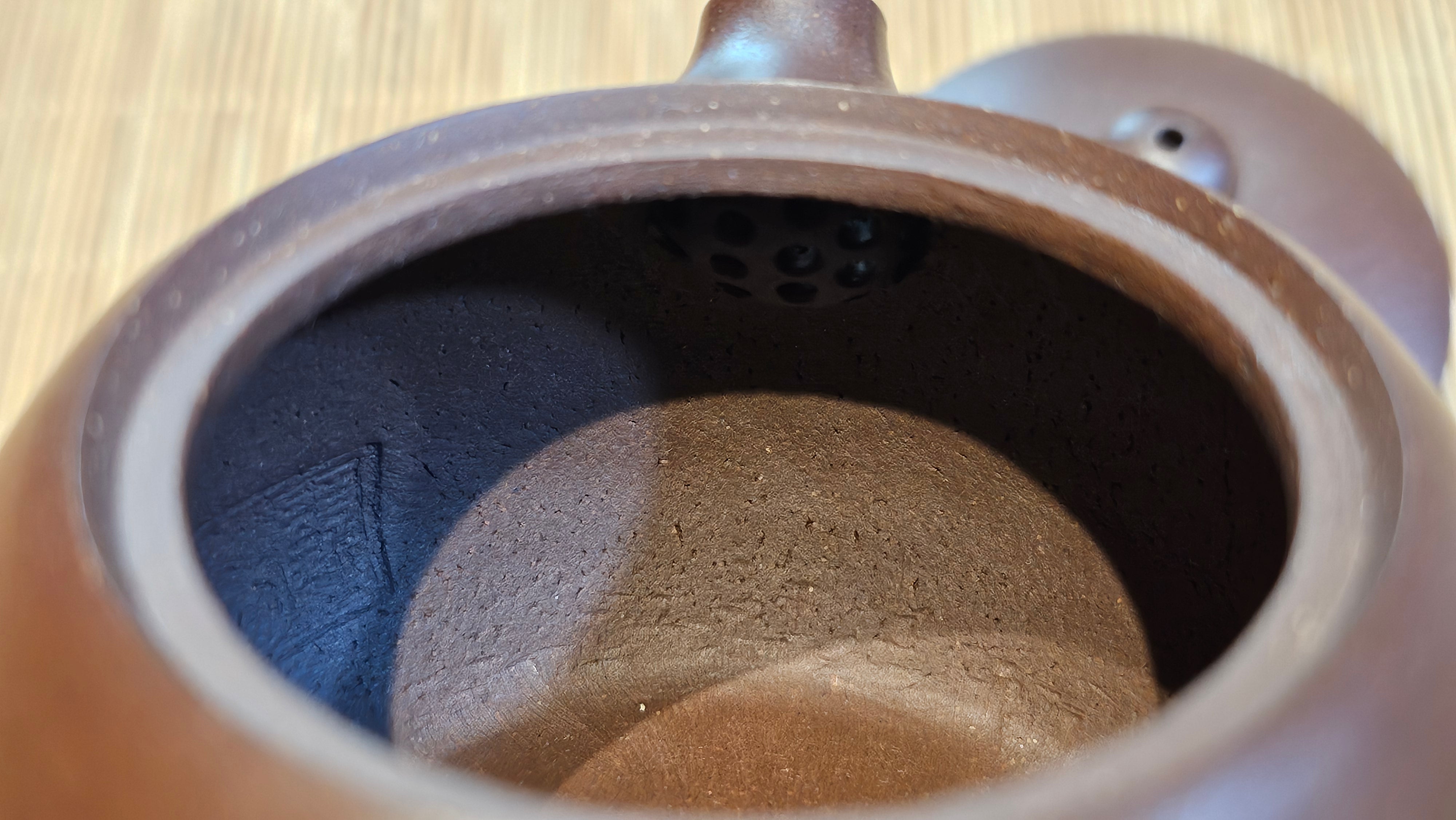 2. Craftsman Gu also conscientiously sculpted a 手推内球孔 Hand-Pushed Spherical Filter to increase the number of filter holes for a solid and fast pour of tea out and with better catching of tea leaves at the bottom fast while allowing tea to flow out from the upper holes. The Fraternity-recognised: Puffer Fish silhouette iteration of this Xi Shi spout, is also crafted here, which accommodates the more generous lumen/outflow, FURTHER accentuating and aiding the swiftness of pour.