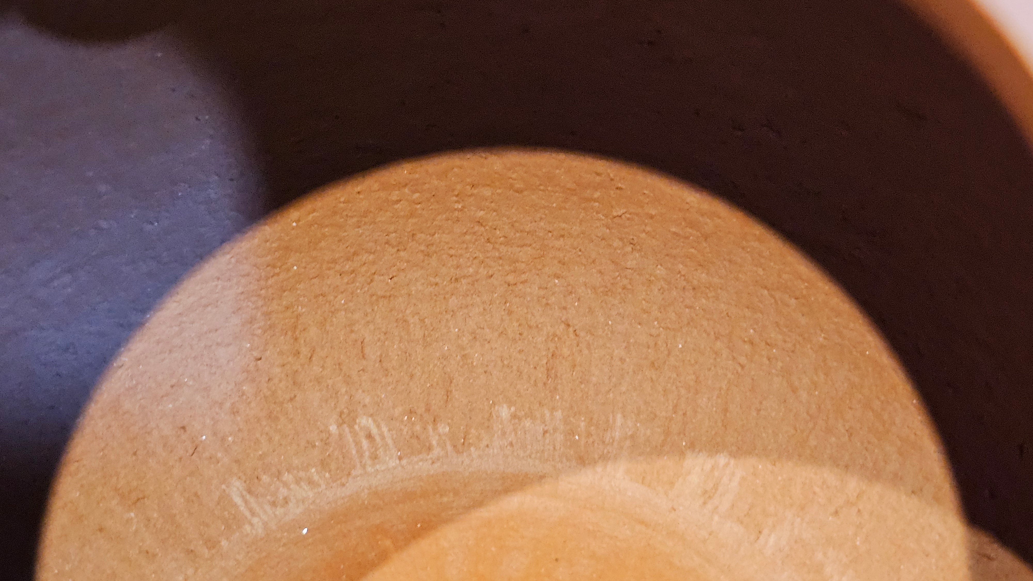 A Fully-Handmade Xi Shi is difficult in its birth from a flat slab to a cohesive sphere, AND in its surviving the kiln (three-times firing) without deformation and cracking.