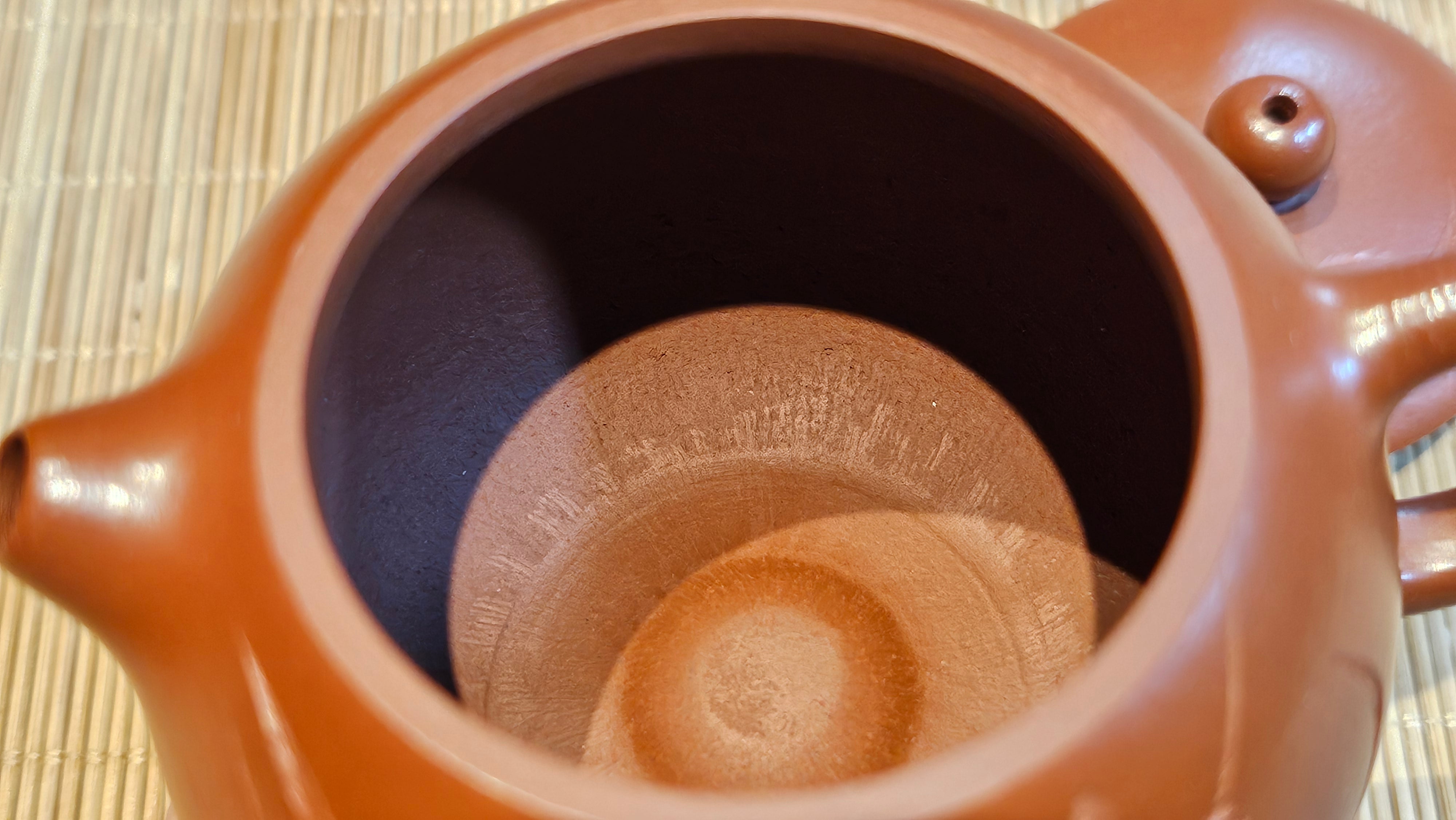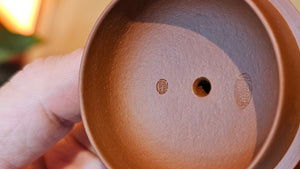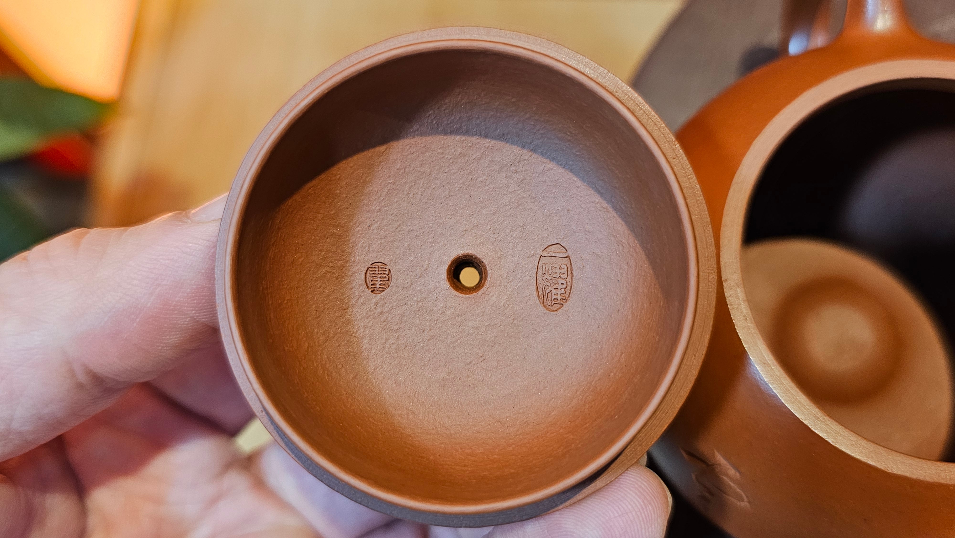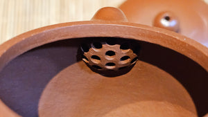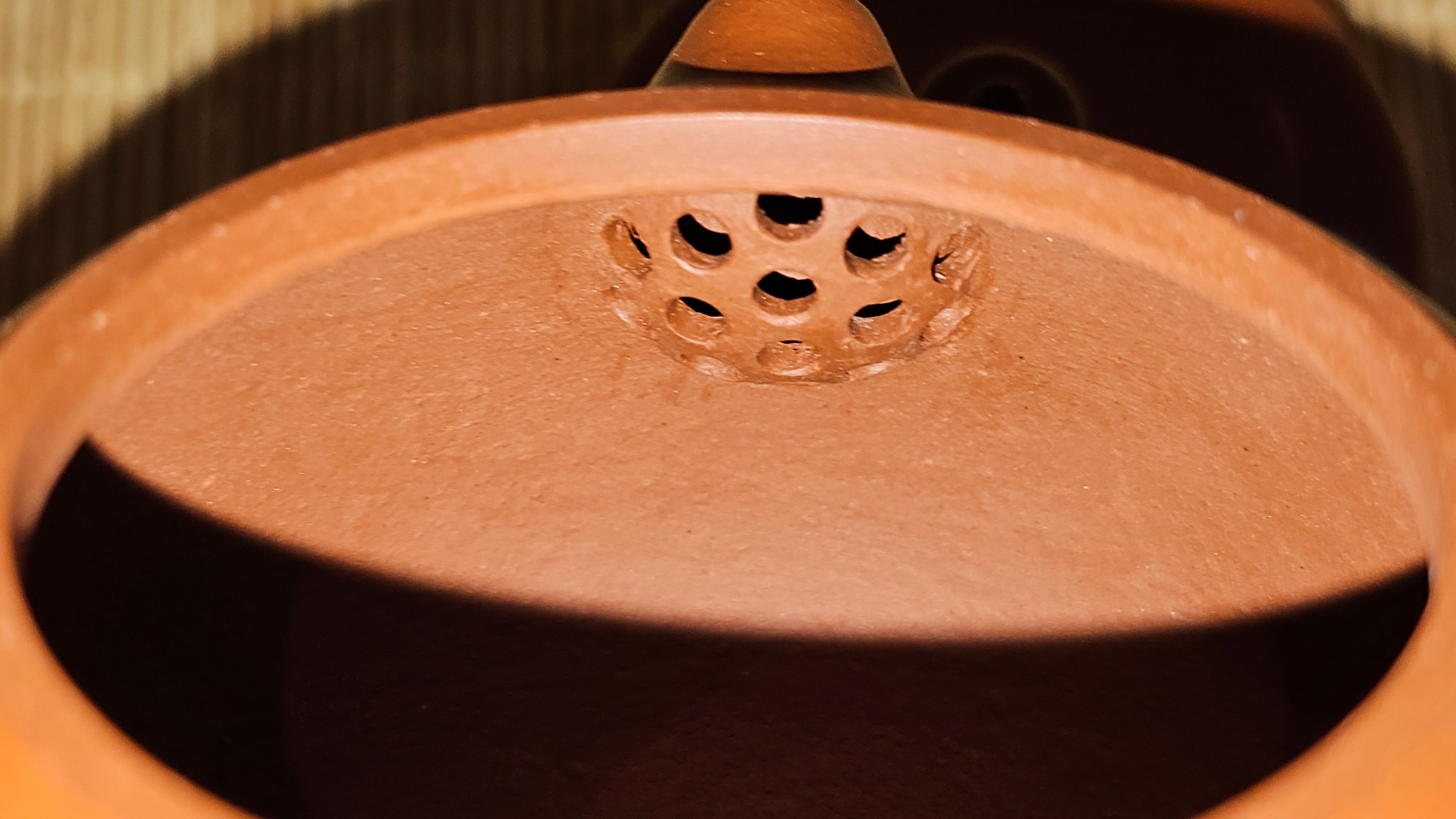 4. Craftsman Zhai also conscientiously sculpted a 手推内球孔 Hand-Pushed Spherical Filter to increase the number of filter holes for a solid and fast pour of tea out, working with the largish diameter spout; and with better catching of tea leaves at the bottom fast while allowing tea to flow out from the upper holes.