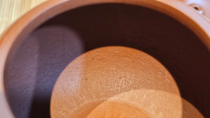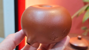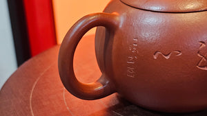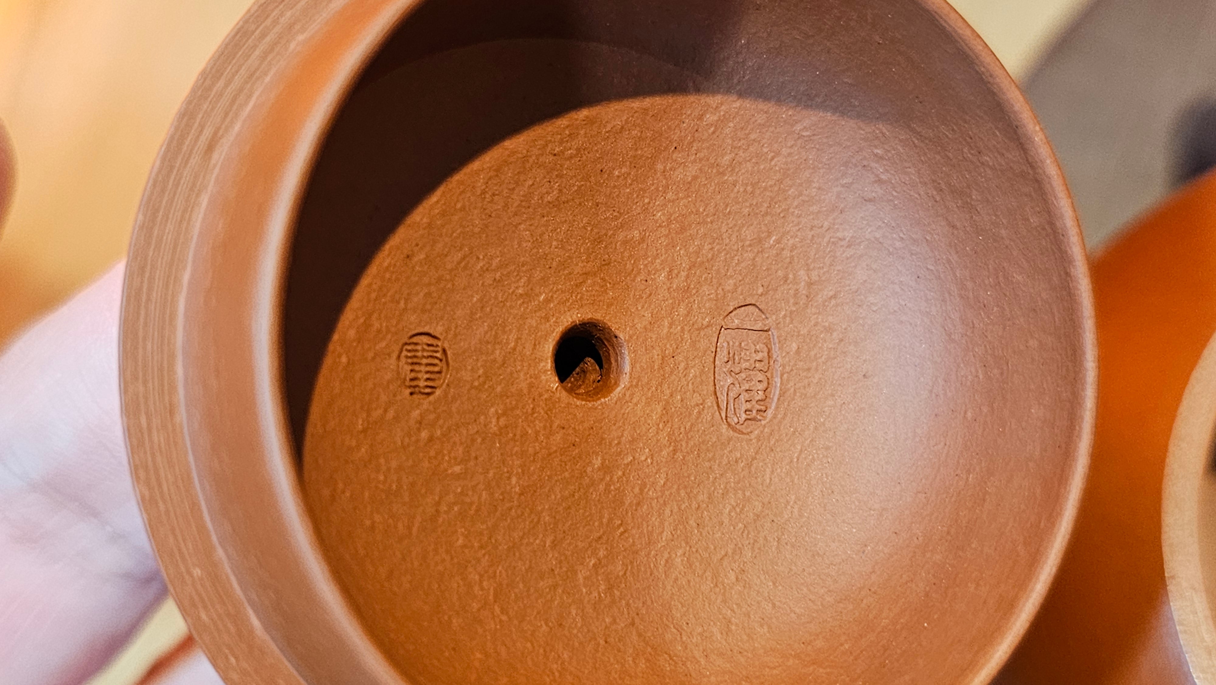 Note on our TRUE Fully-Handmade Zhu Ni pots from RealZiSha: NOT those thick-/irregular-thickness-walled ones which are actually fake "Fully-handmade ZhuNi pots" utilising the cheating new technology: "车一刀 Che Yi Dao": Such ZhuNi pots utilizing Che Yi Dao process, have been sprouting up in the market since early 2022. Che Yi Dao involves a swivelling-rotational cutter that goes around a roughly-finished ZhuNi pot to cut the outer surface into a perfect shape. This cutter obliviates the need of accomplished skill of a true Fully-Handmaking Craftsman. Obviously, Che Yi Dao also absolves the need of a skilled FHM Craftsman to 1)pound the slab into a careful thin-slab, 2)paddle-pat the slab into a uniform shape purely manually.